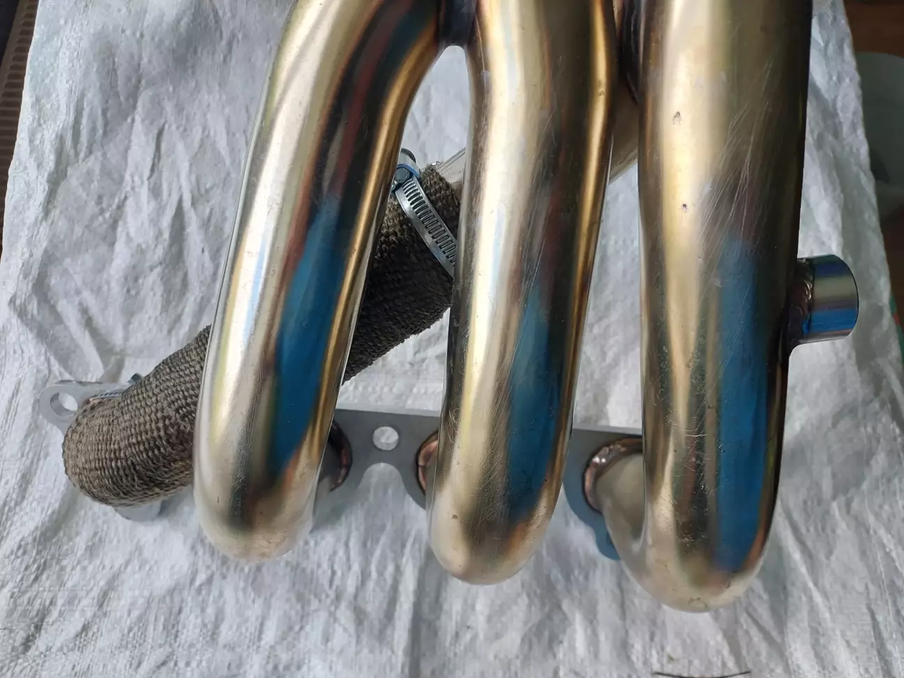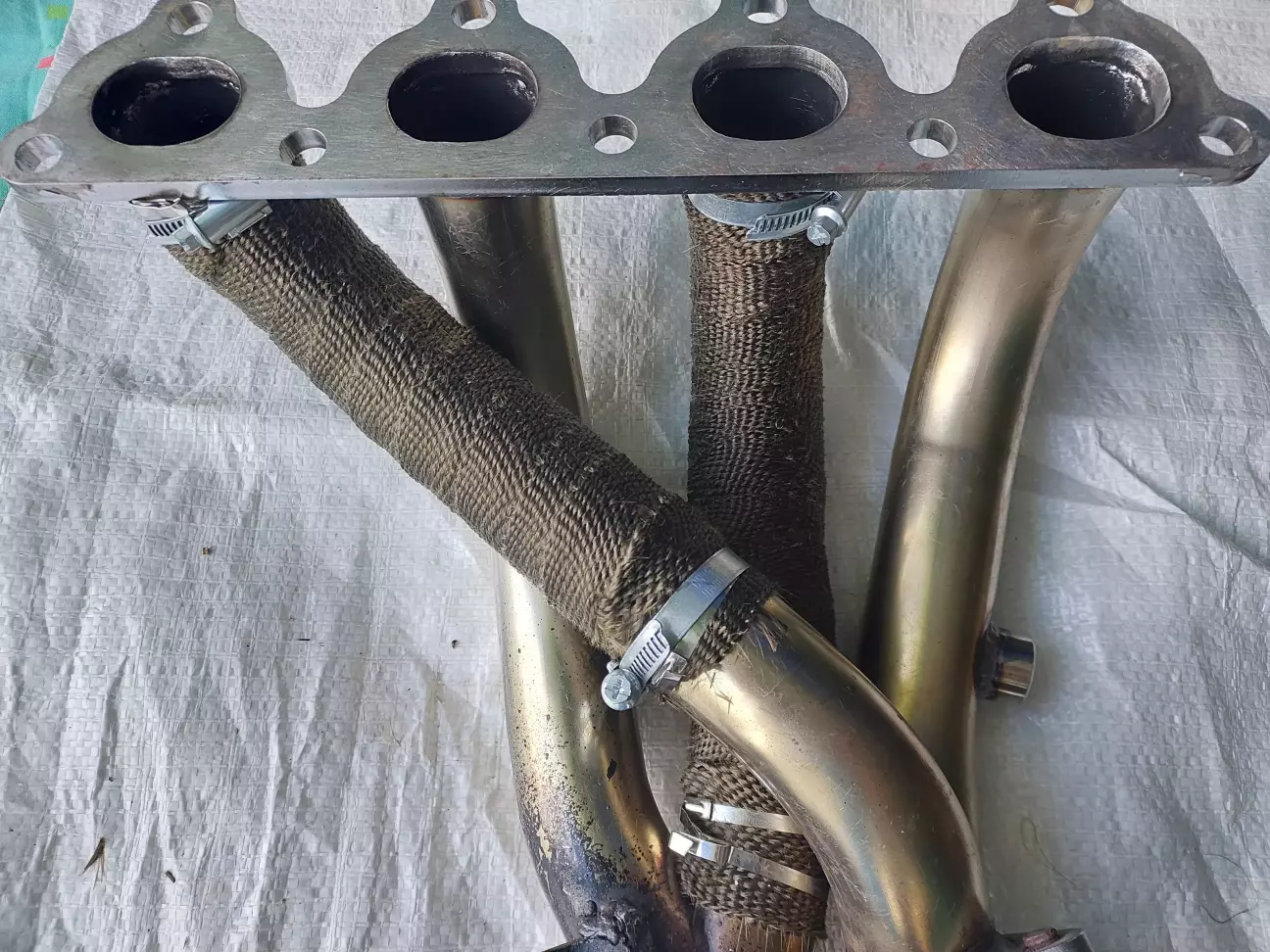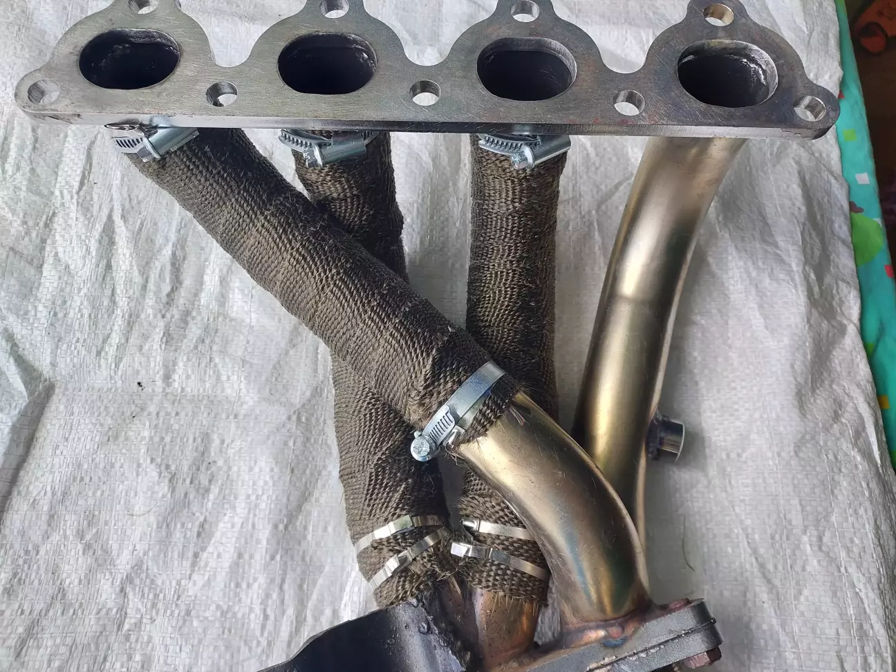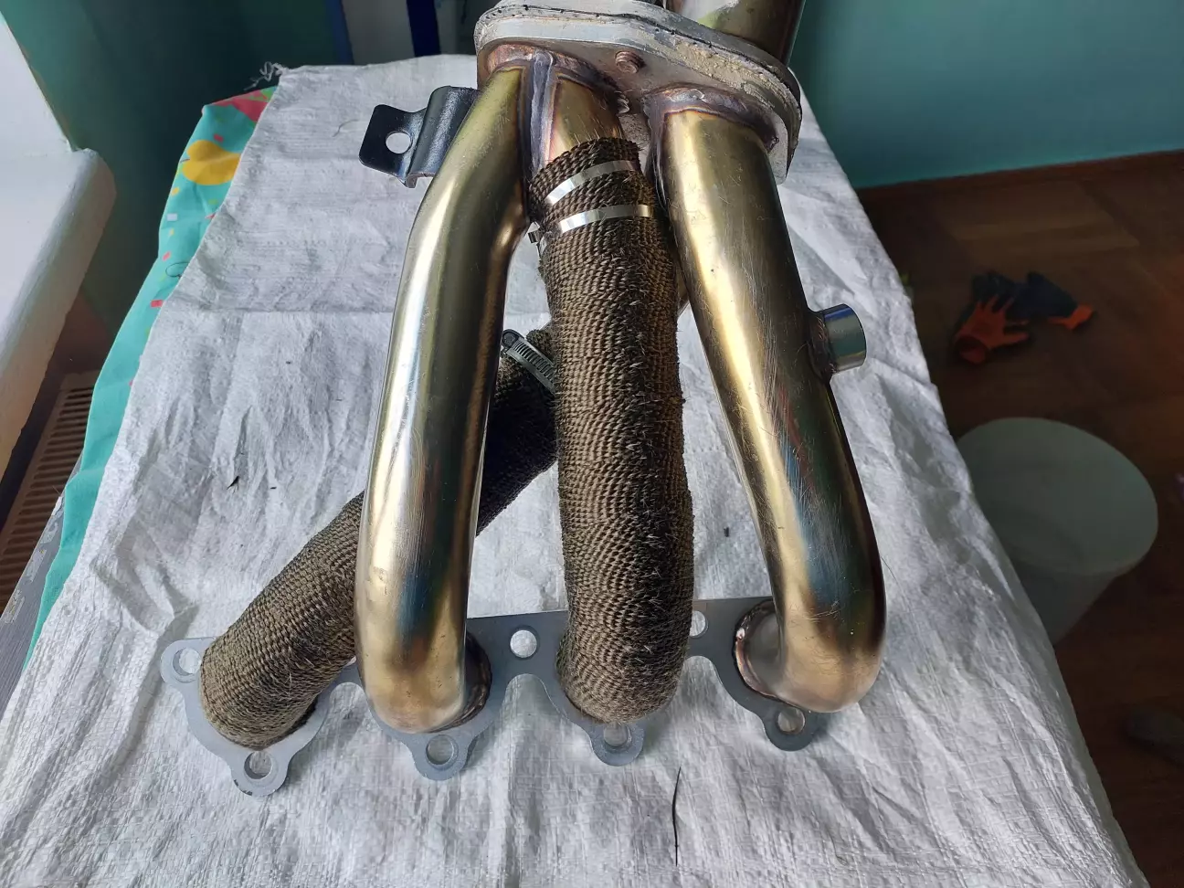 Далі мотаємо суцільним залишком починаючи від 1 циліндру та виходимо на одну з двох наступних прийомних труб, але перед цим весь залишок термоленти ділимо пополам, щоб обмотати другу трубу.