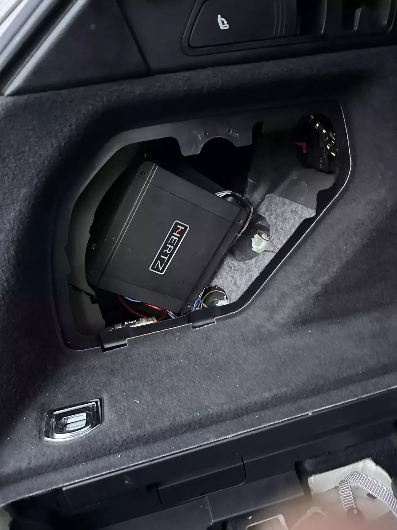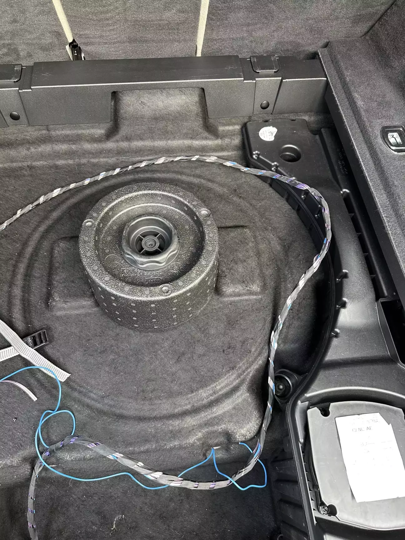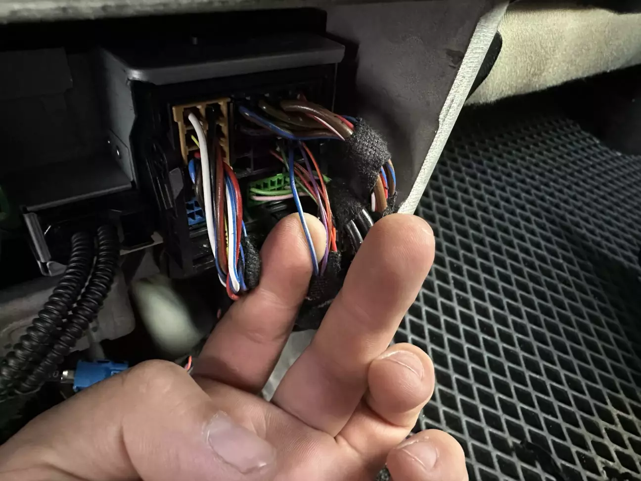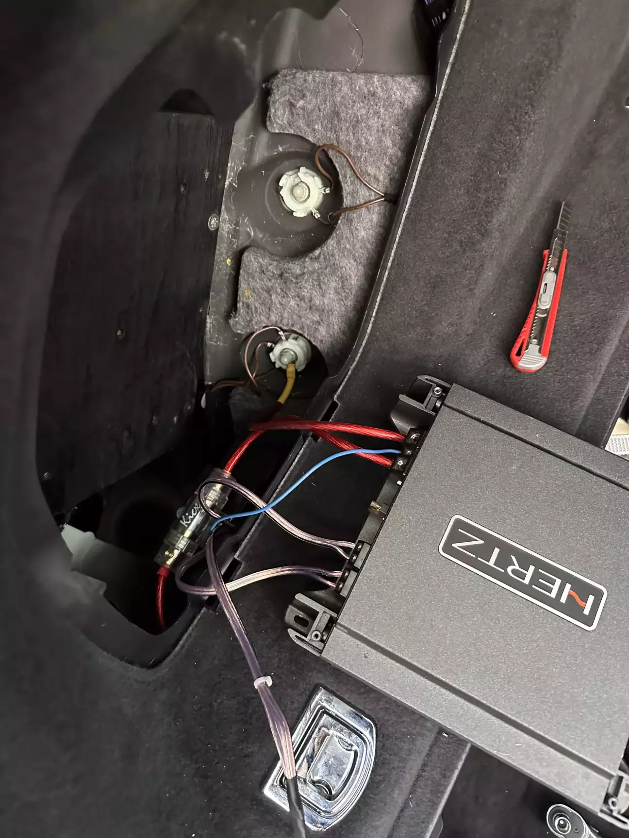 Місце встановлення підсилювач вибрав штатне - в лівому крилі, тому мотаємо косу акустичних дротів від блоку мультимедіа до крила: