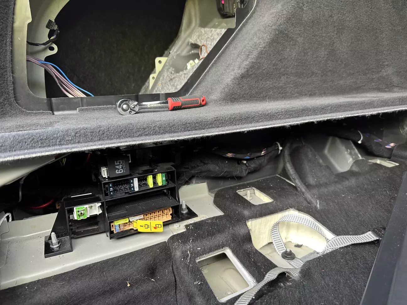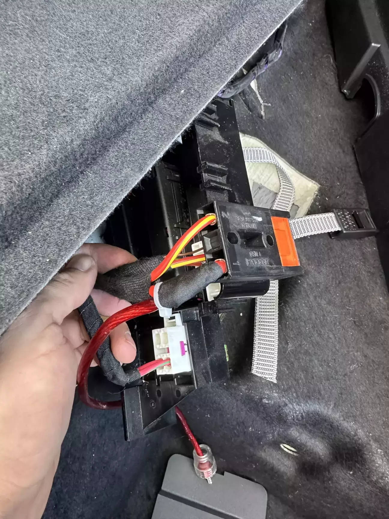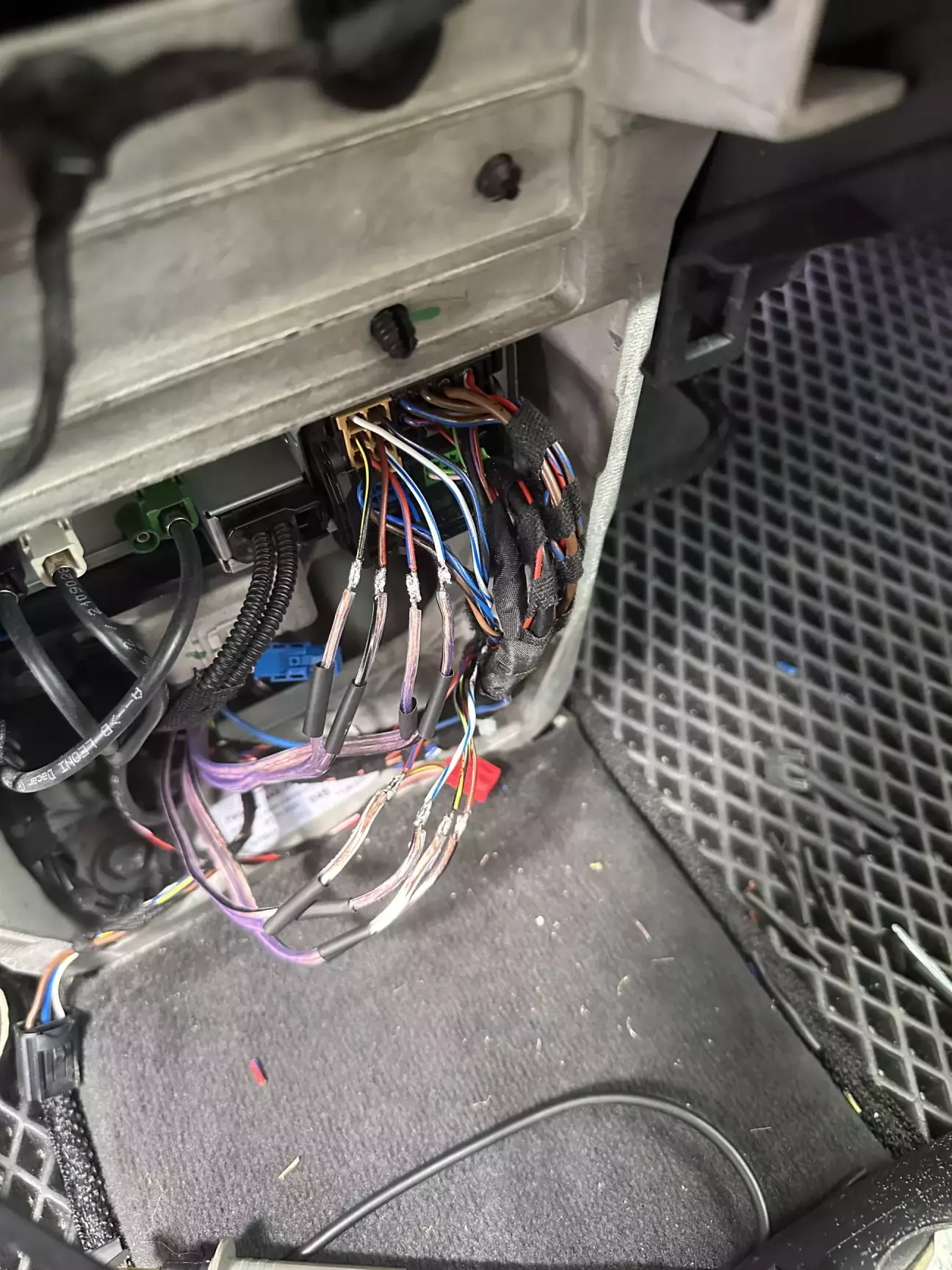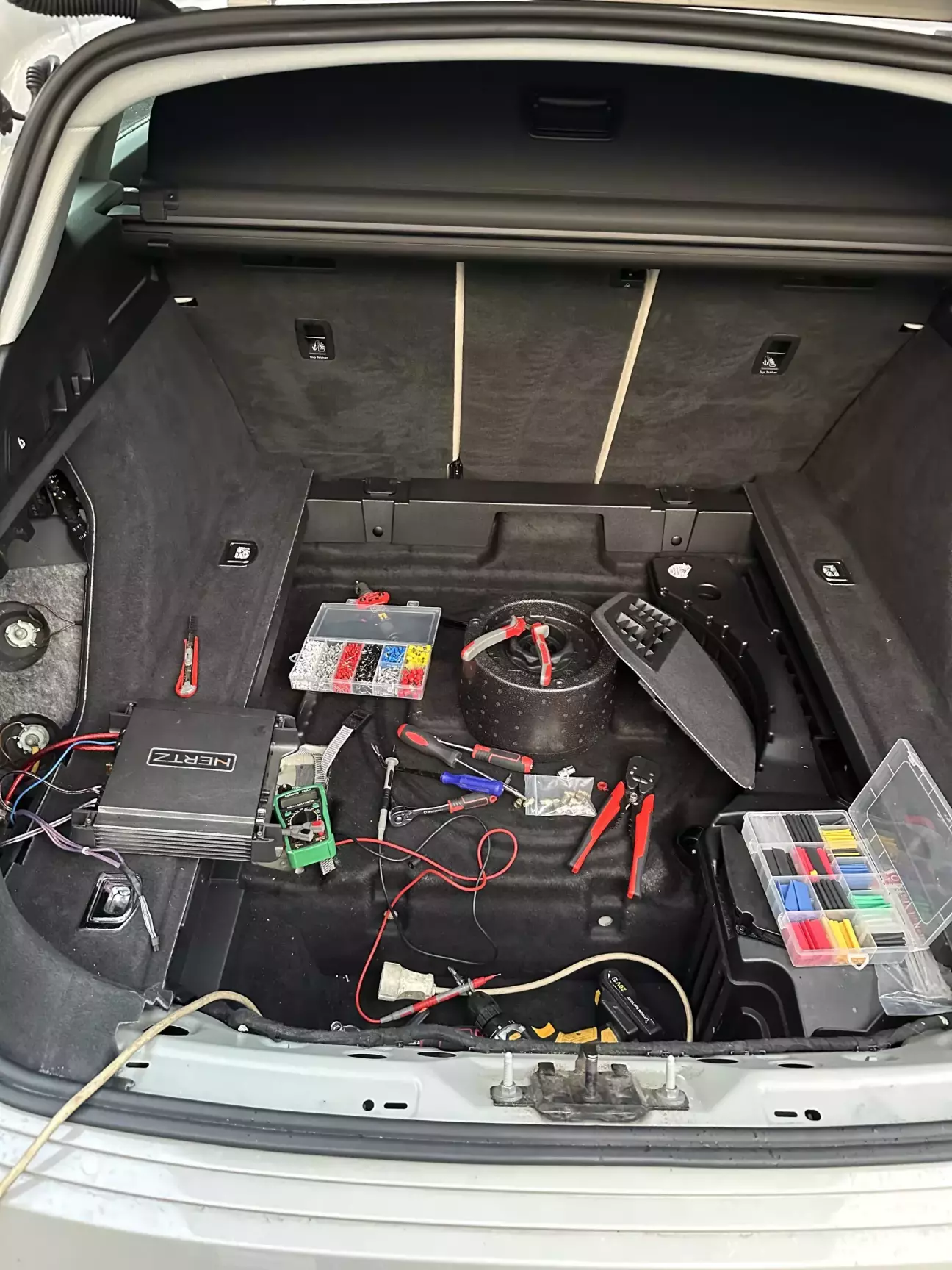 Місце встановлення підсилювач вибрав штатне - в лівому крилі, тому мотаємо косу акустичних дротів від блоку мультимедіа до крила: