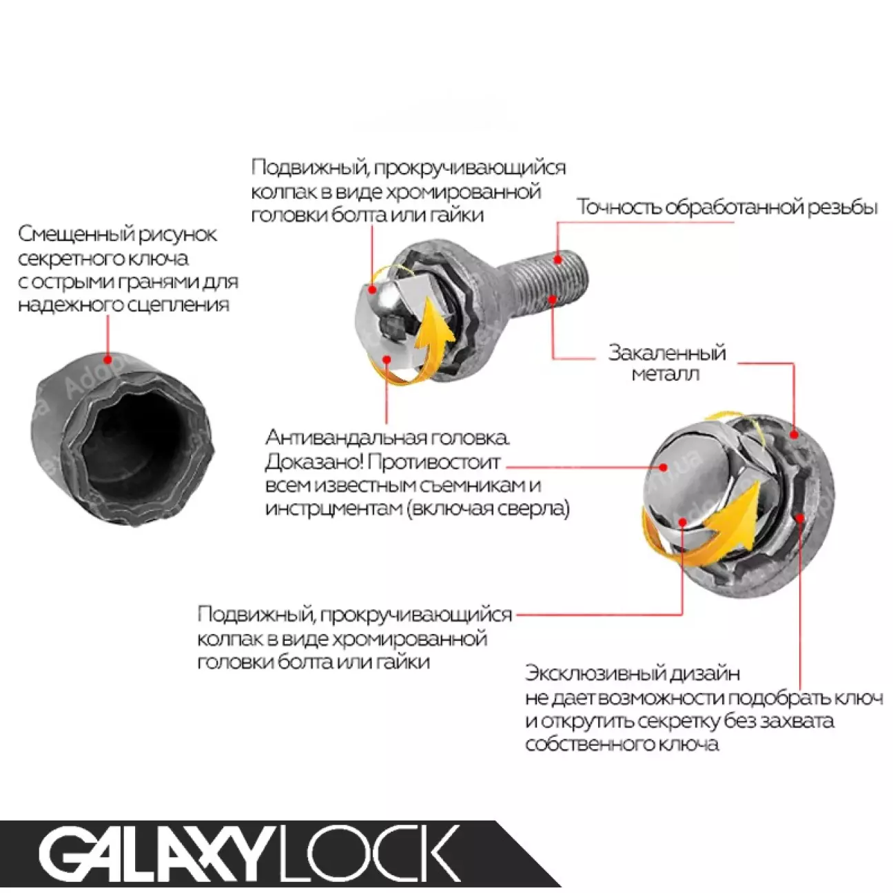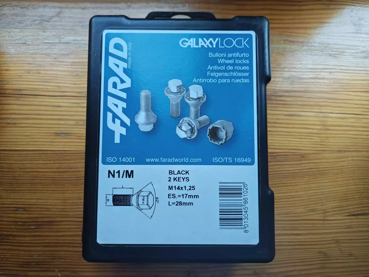 FARAD GALAXYLOCK | Болти-секретки М14х1.25х28 Конус Головка, що обертається Ключ 17 (2 ключа) чорний колір.