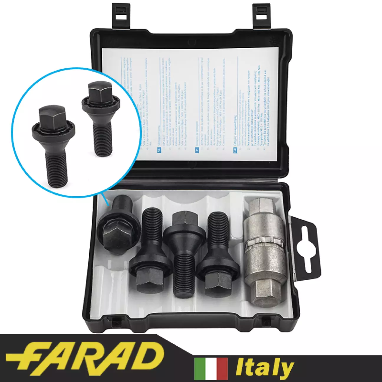 Оригінальні секретки Farad виготовляються на заводі Італії. У даному комплекті представлено 4 болти з індивідуальним секретним малюнком та ключем до них. Усередині упаковки міститься спеціальний код для відновлення ключа при його втраті.