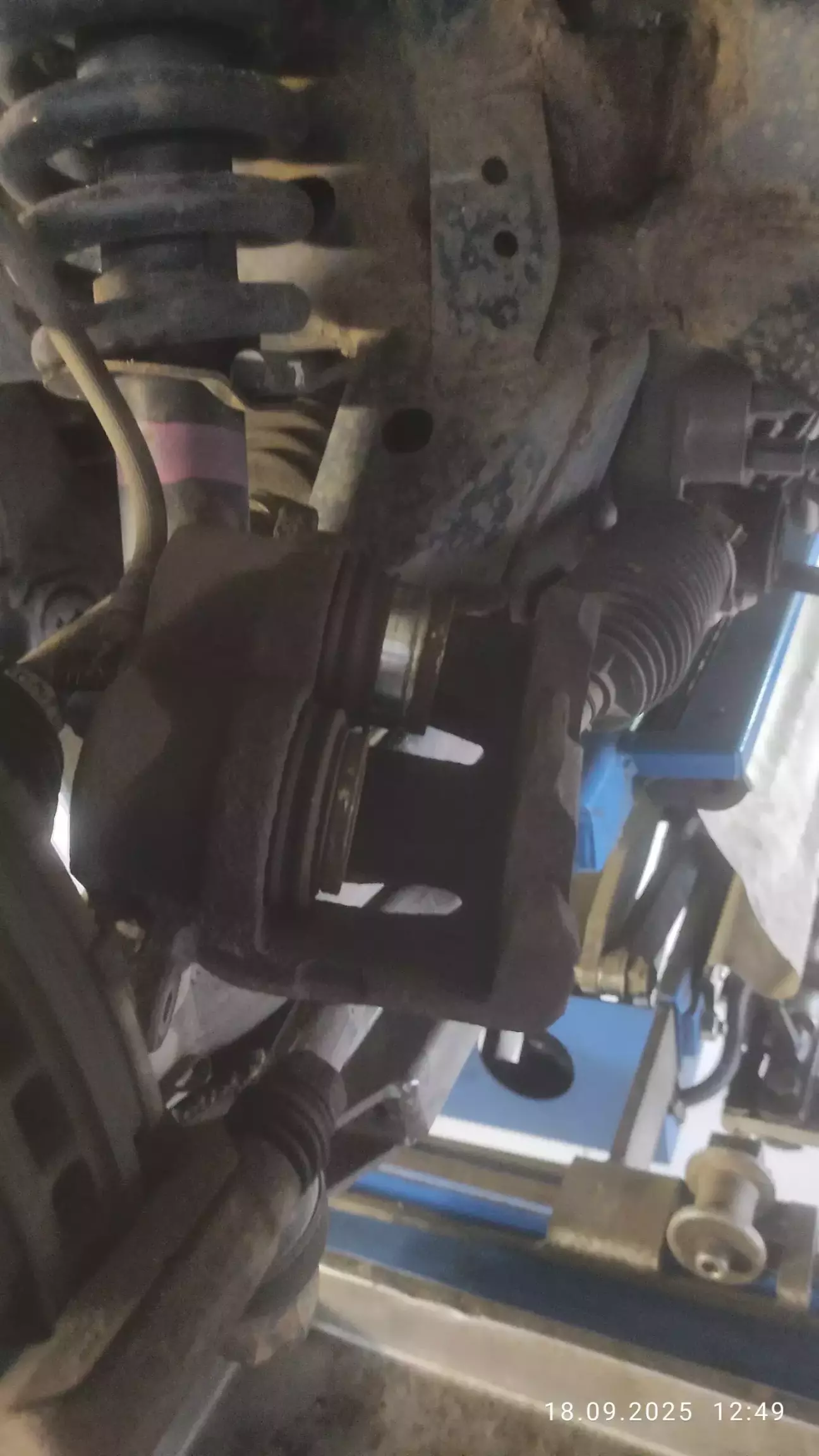 Запчастини які виористовував, не ві оригінал лише саме по гумовим виробам не став ратися а брав саме оригінальні запчастини. передеумовою став заклинювання предніх гальм а там як виявилося далі працювали лише верхні з двоз поршнів повнстю, лівий супорт почав вже стирати колодки на клин.