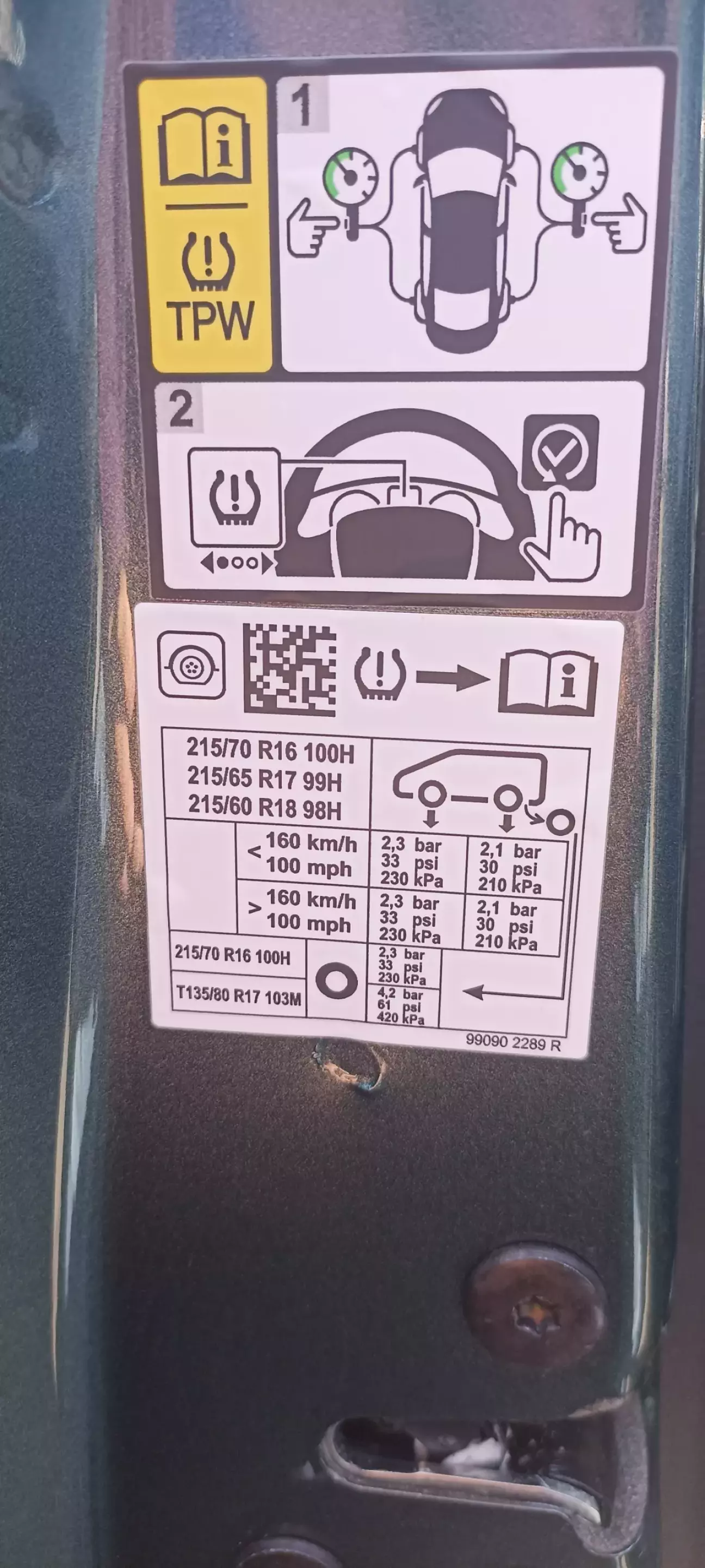 Рекомендуемое давление в шинах, по сравнению с предыдущим поколением, на 0,1 бар стало больше.