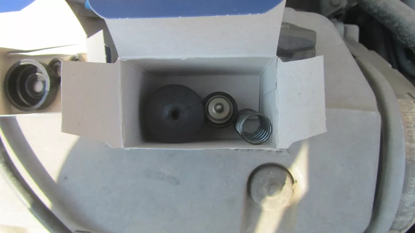 Первый под разборку попал рабочий т.к. он не обслуживался мной. Разобрался очень просто, сняв пыльник поршень просто выскочил. И сразу БИНГО! манжета одна приказала долго жить… Не удивительно за столько то лет. Срани в цилиндре было предостаточно, вытерев все и промыв СПИРТОМ обнаружил раковины на стенках.Эта беда на работу поршня не должна сыграть роли.