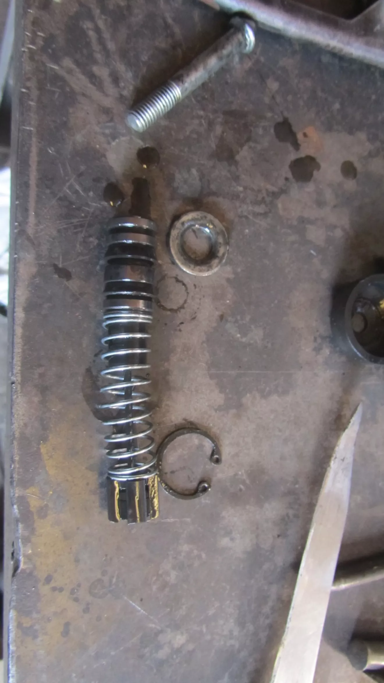 Далее разбираем главный. С ним мороки чуток больше. Снимаем стопорное кольцо и высыпаем на стол