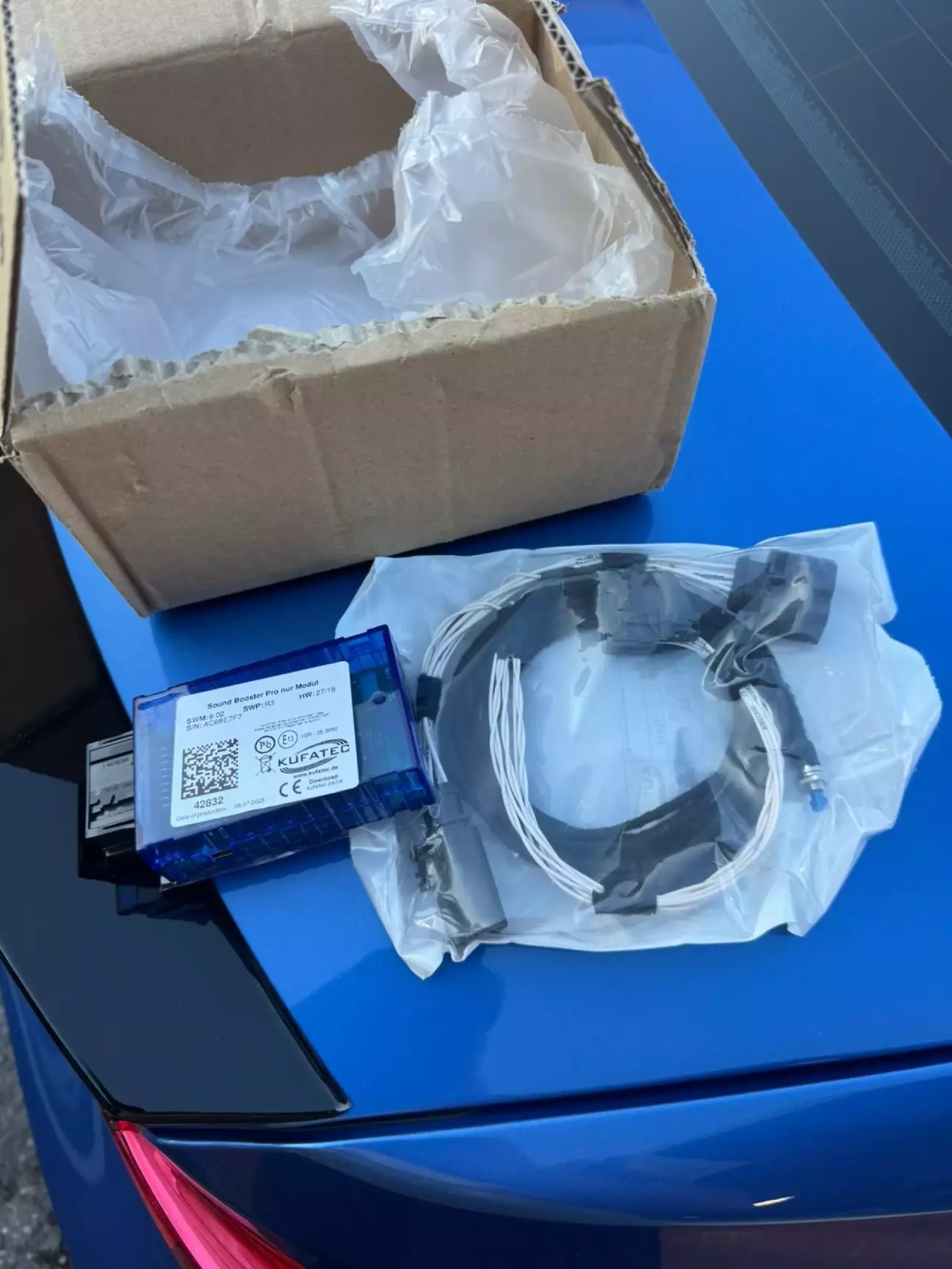 Авто з заводу укомплектована системою активного вихлопу, який імітує звук вихлопу так як з дизелем гарно звуку ти не добʼєшся. Ще на попередній компетішн хотів залити софт вихлопу від sq7, багато читав про це, знайшов софт від багатьох авто ваг групи окрім sq7. Отже вже на цьому авто вирішив піти альтернативним шляхом і купив модуль з проводкою від Kufatec з можливістю редагування звуку самостійно і збереження 6 режимів із подальшим керуванням через окрему кнопку в салоні чи через телефон.
