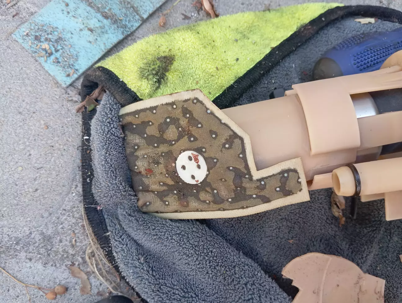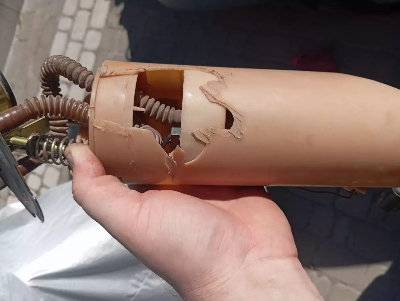 Колбу залишив цю, тимчасово, доки не знайду нову, приліпив назад той шмат, стянув 2ма стяжками та замотав ізострічкою)