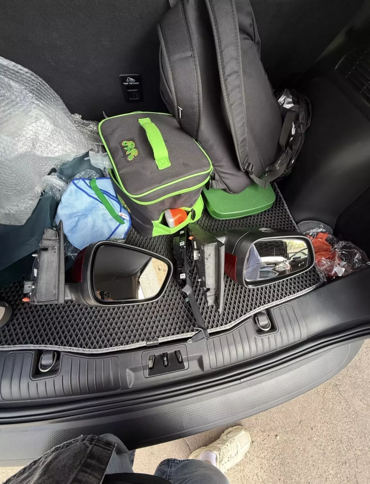 В минулому дописі писав, що наступною "хотєлкою" буде заміна дзеркал на європейські. Якийсь час їх не було в продажу, дочекався оголошення в барахолці і як раз попався повний набір, дзеркала та блок керування, з кнопкою складання дзеркал. Були вони не в колір і продавець не знав, чи взаємозамінні фарбовані накладки між європейською версією та америкою, але все одно забрав їх, думав якшо шо, заклею їх в чорний колір:)