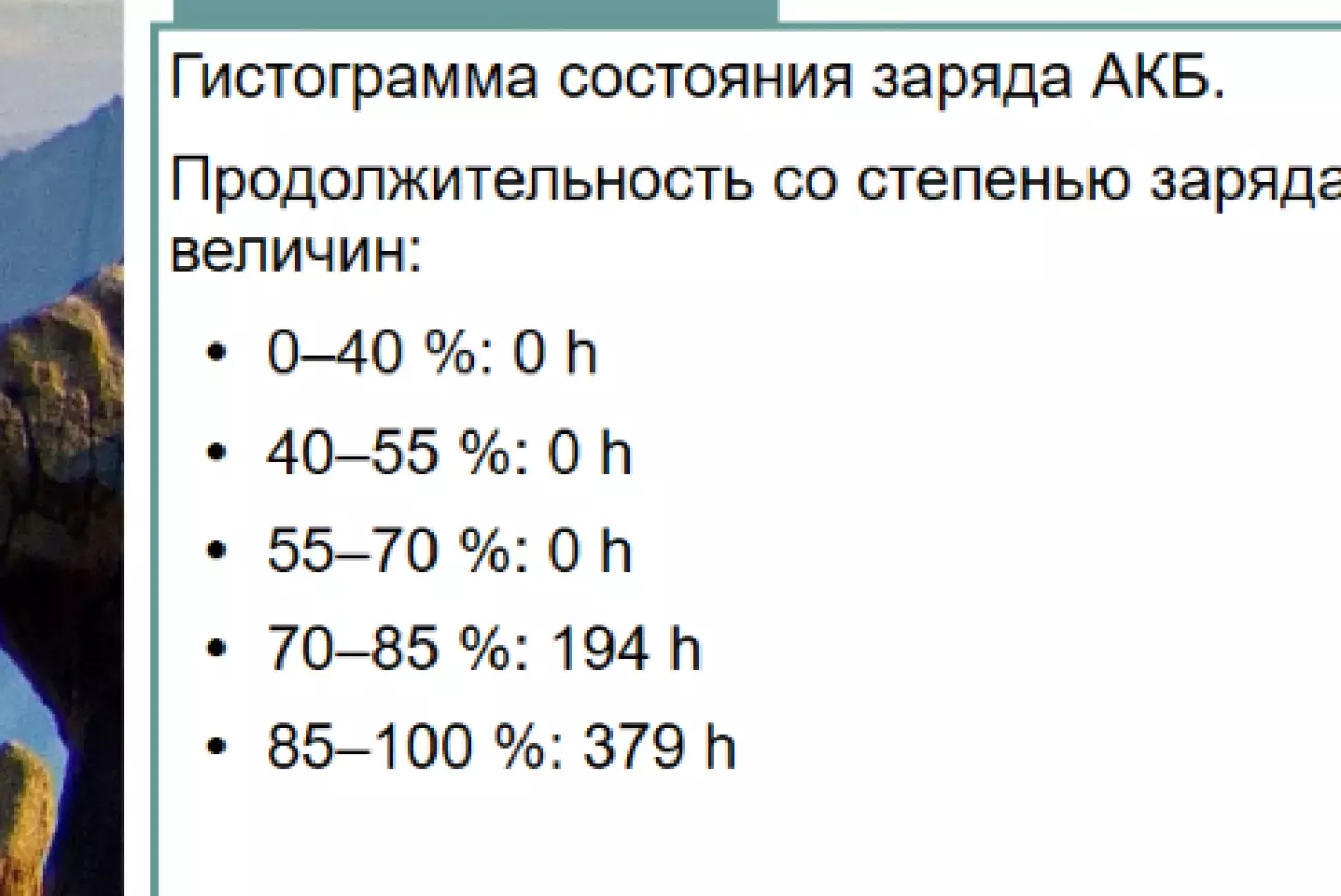 Справний аккум знаходиться в стані 70-85 % переважну кількість годин. Ну і може 55-70% трошки менше.