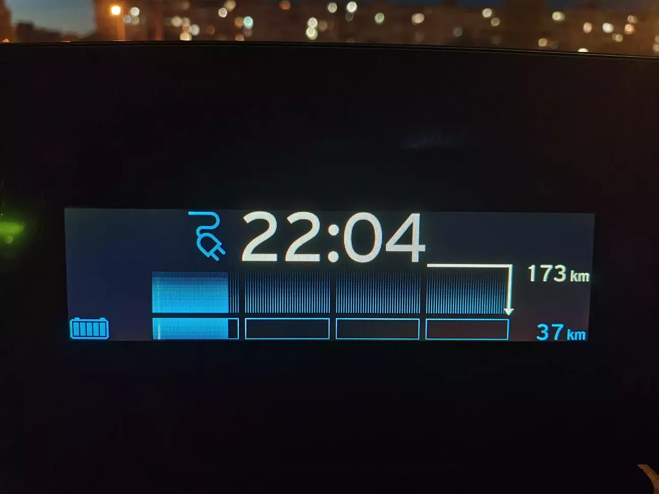На дисплеї в авто показує приблизний час коли зарядиться авто і приблизну кількість кілометрів при повній зарядці. Це зручно.