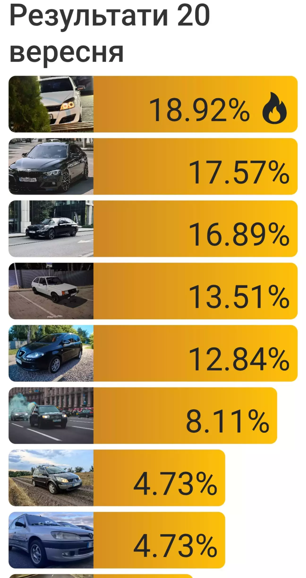 Сьогодні через це пропустив "День конкурсу свого автомобіля". Може, так і краще — перевірю, який авторитет він зумів здобути без моєї статті й підтримки. Завтра побачу, яке місце він посяде, після красування м'язами 😊.