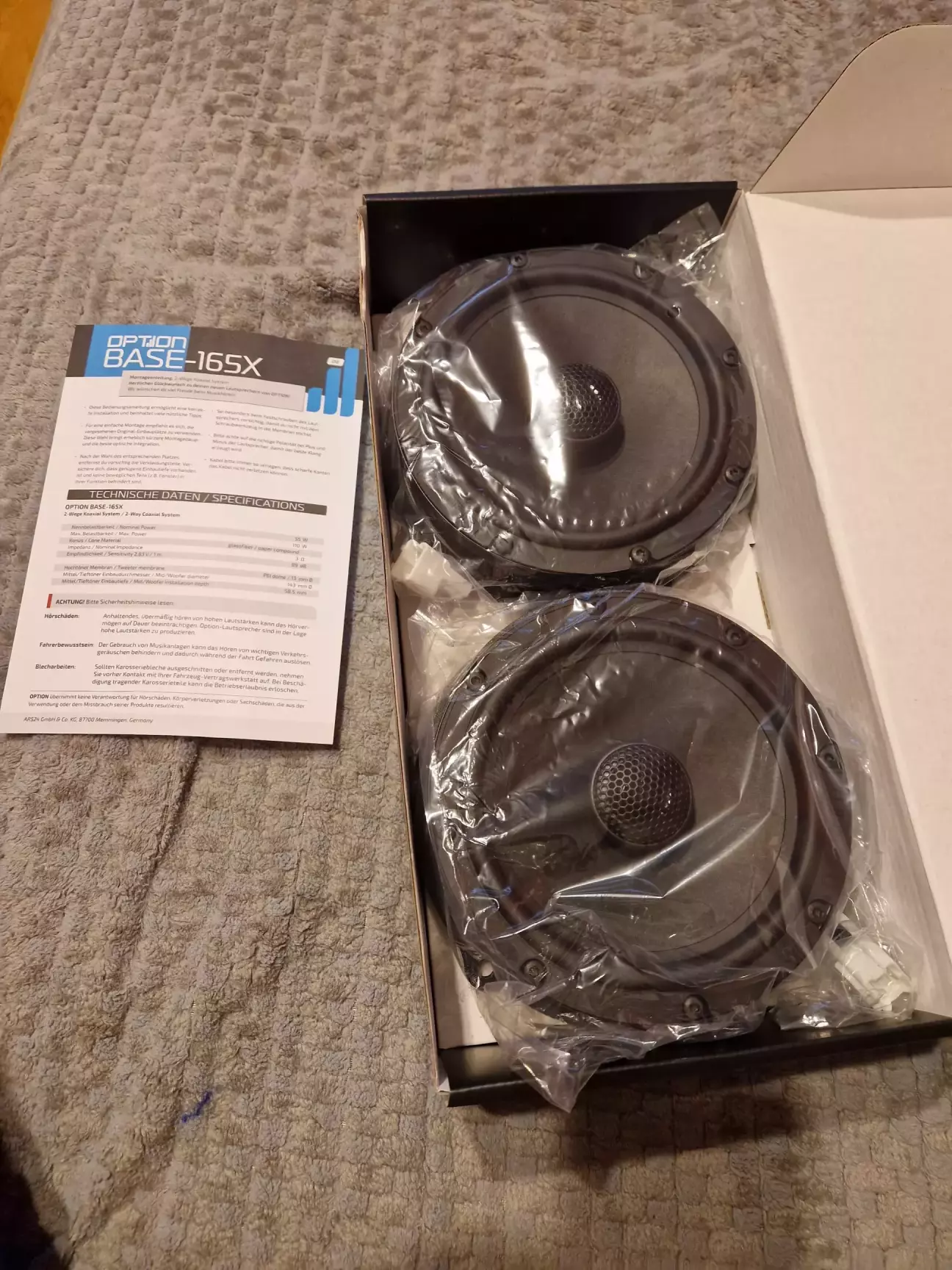 трошки заробивши на овертаймах, рішив відірвати від серця 99є на комплект 16.5 см задньої акустики від німецької компанії ASR24 - скорше всього кетой, але plug-and-play рішення для Дачії.