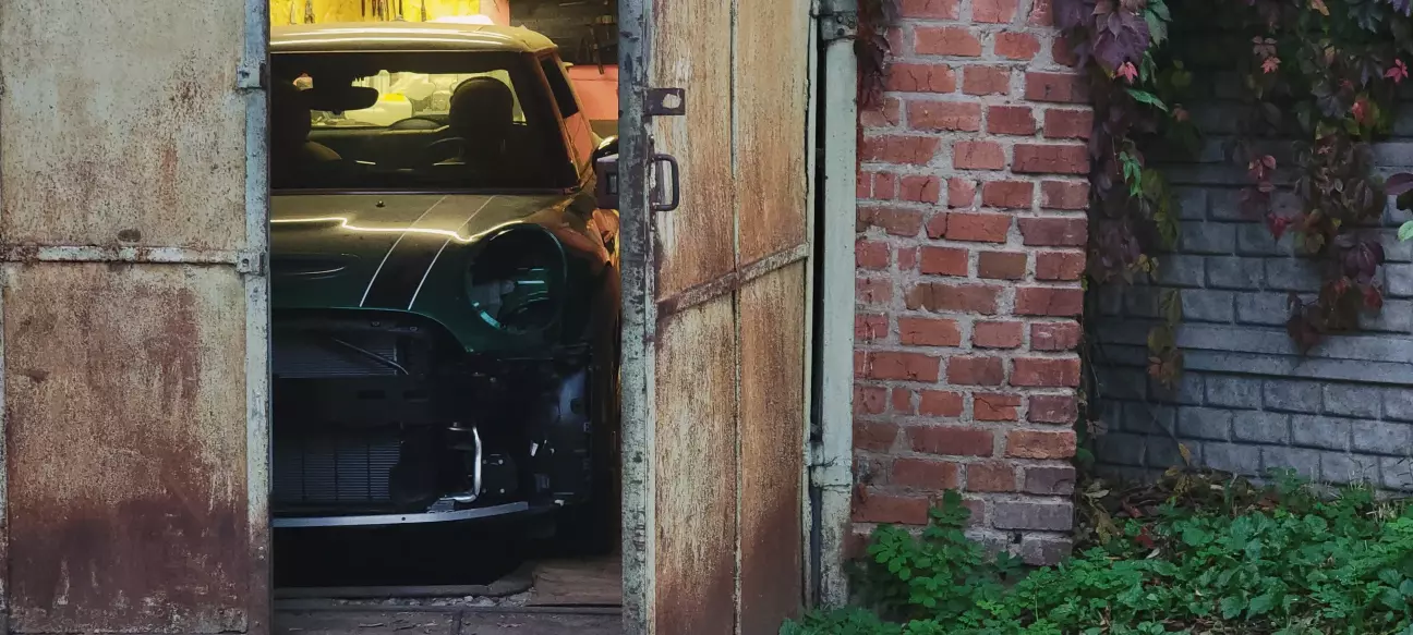 Нарешті можна було докрутити захист моторного відсіку. Також мінік проїхав перші півметра вглиб гаражу, бо яма більше не потрібна.