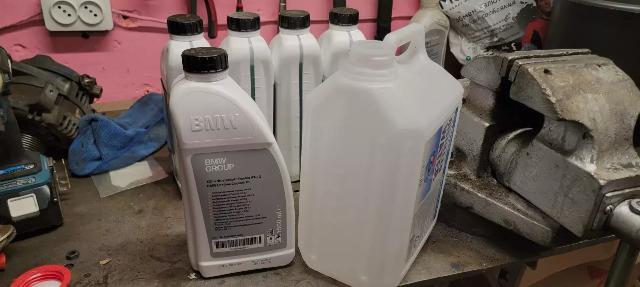 Також приїхав оригінальний антифриз в кількості 5х 1.5л пляшок. По тісу казали, що об'єм - 12л+ще пару літрів повинно бути для вакуумної заправки.