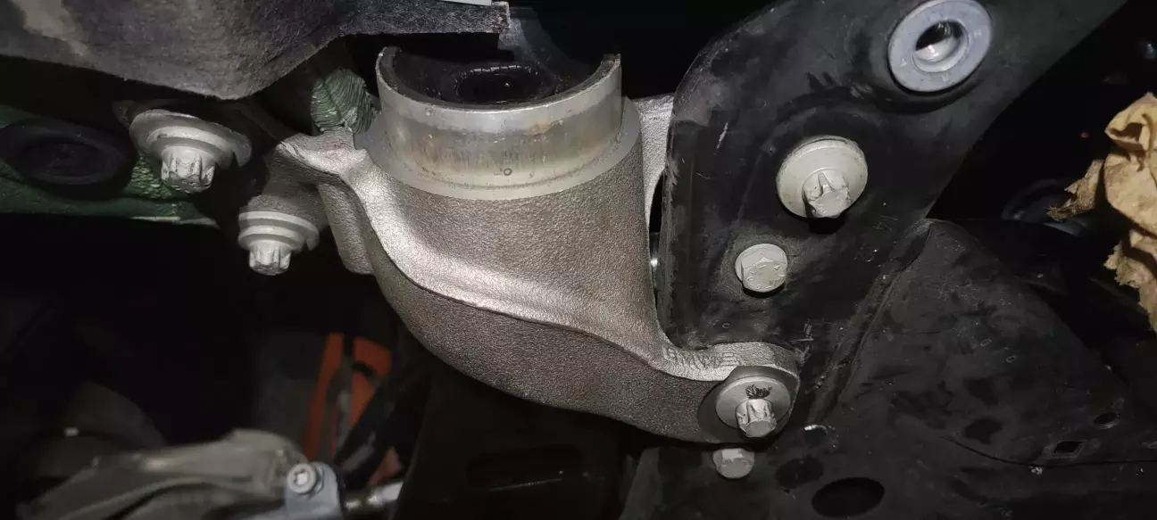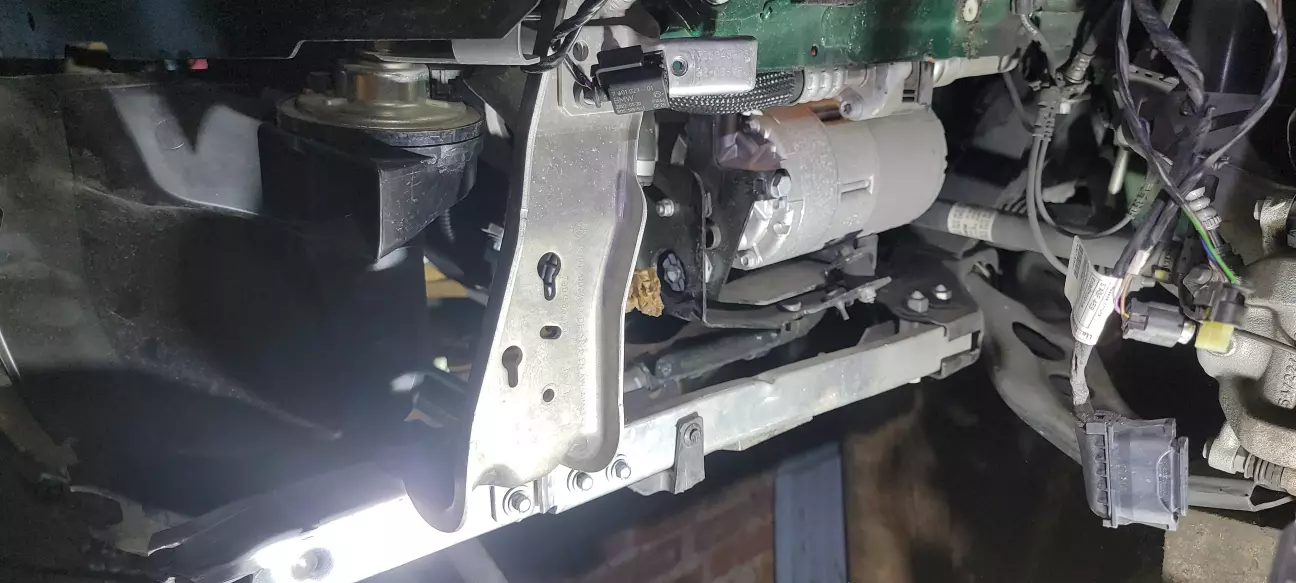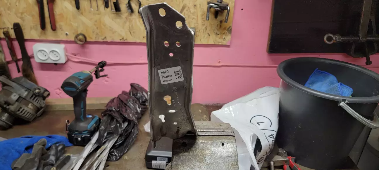 Все на місці, але підрамник не хоче вставати нормально. Значить потрібно глянути інше кріплення - і саме воно настільки пластично деформувалося, що тягнуло з собою підрамник на цілий сантиметр вгору. Вийшло трошки підрихтувати його, але зміщення самого підрамнику наліво приблизно на 2 см ще було присутнім.