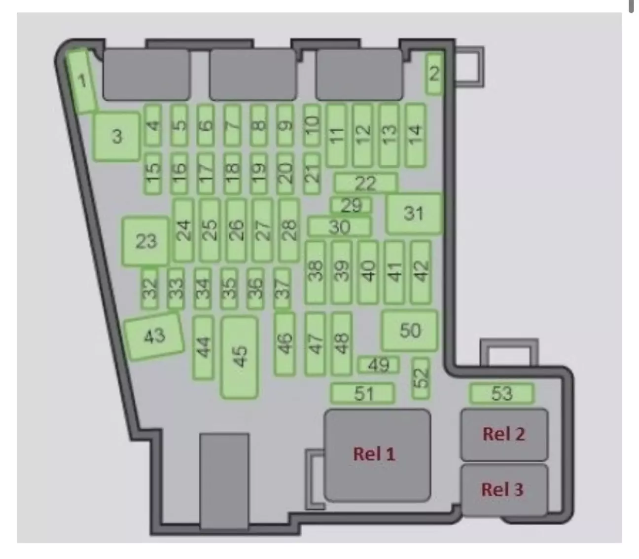 F49 - 5А реле стартера 1, реле стартера 2, датчик положення педалі зчеплення