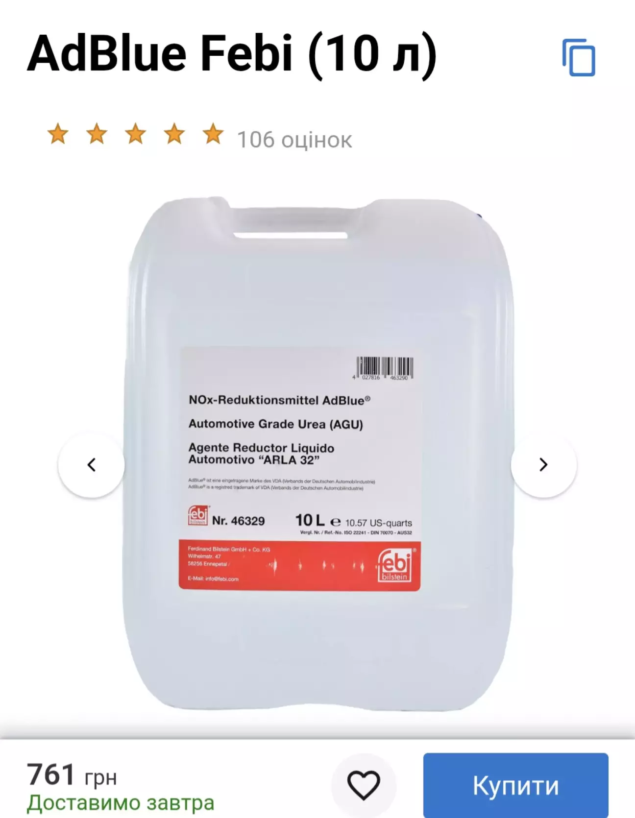 була придбана заздалегіть на DOK.UA, окремо замовляв присадку до мочевіни - начитався страшилок, шо з цією системою теж негаразди бувають.