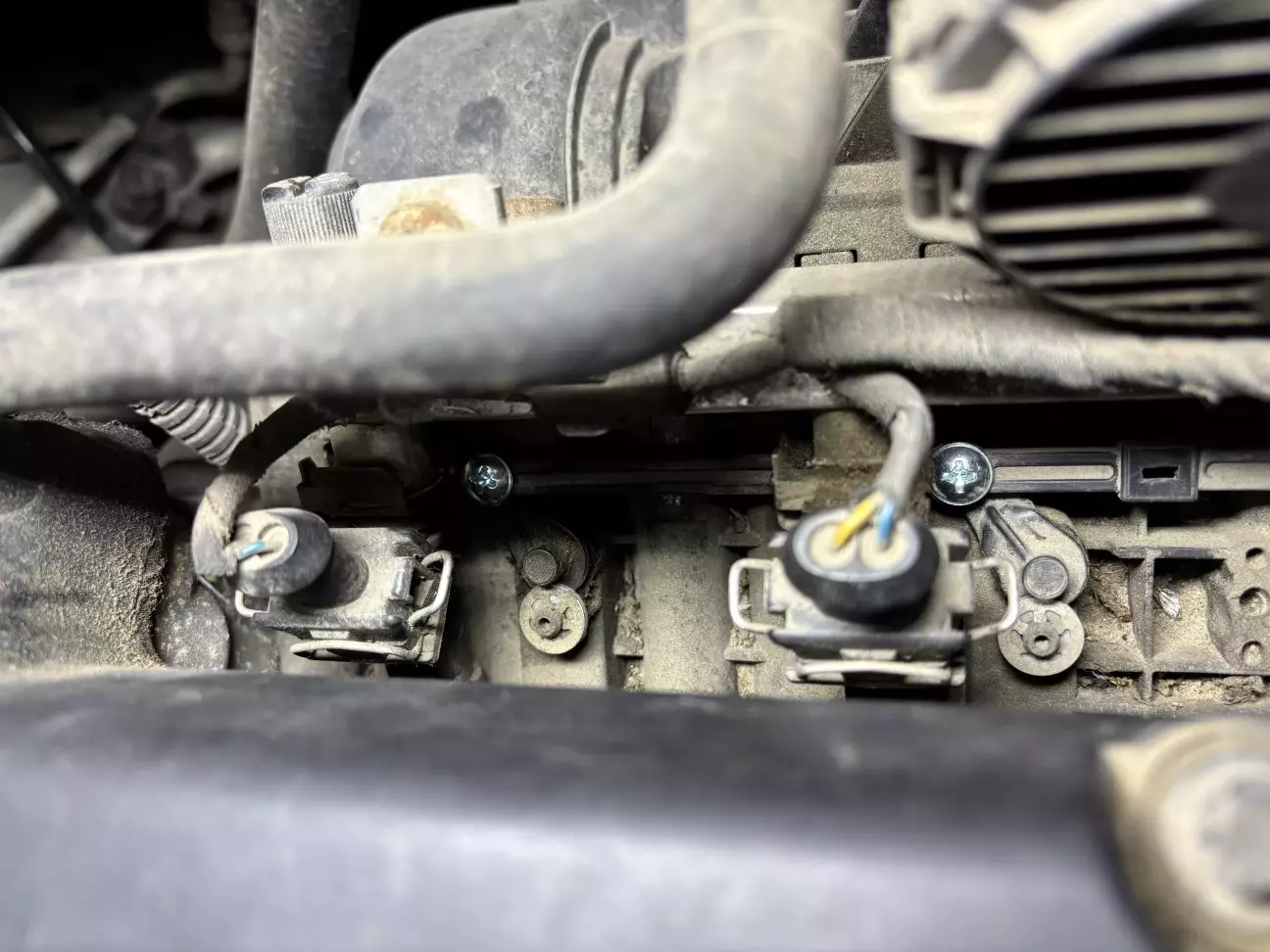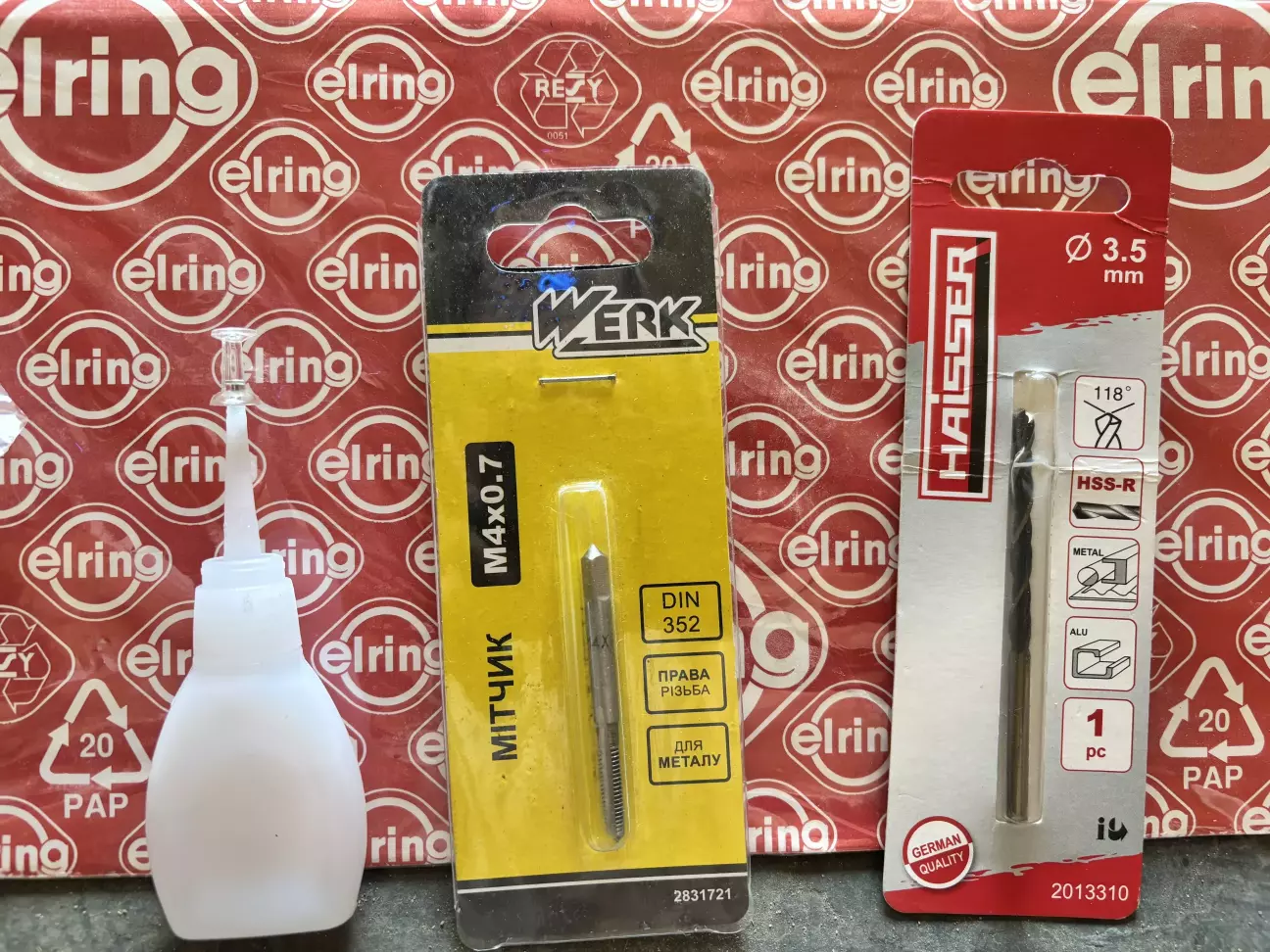 Снимать дроссель и топливную рампу не хотелось, поэтому "чиним" без разборки. Вариант с саморезами отбрасываем, так как считаю его максимально ненадежным. Выточить втулочки, как делают в интернете, тоже не у кого. Поэтому "чиним" болтами.