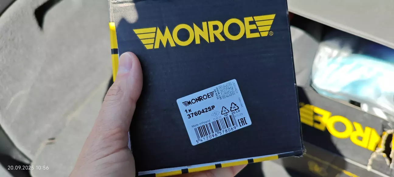 Привет всем. Нечего писать, пробег большой, 300+, амортизаторы все родные и несмотря на то что сухие, работают так себе. При последних моих самостоятельных ремонтах, заметил что передние установлены от Monroe. Этой фирмы и заказал.