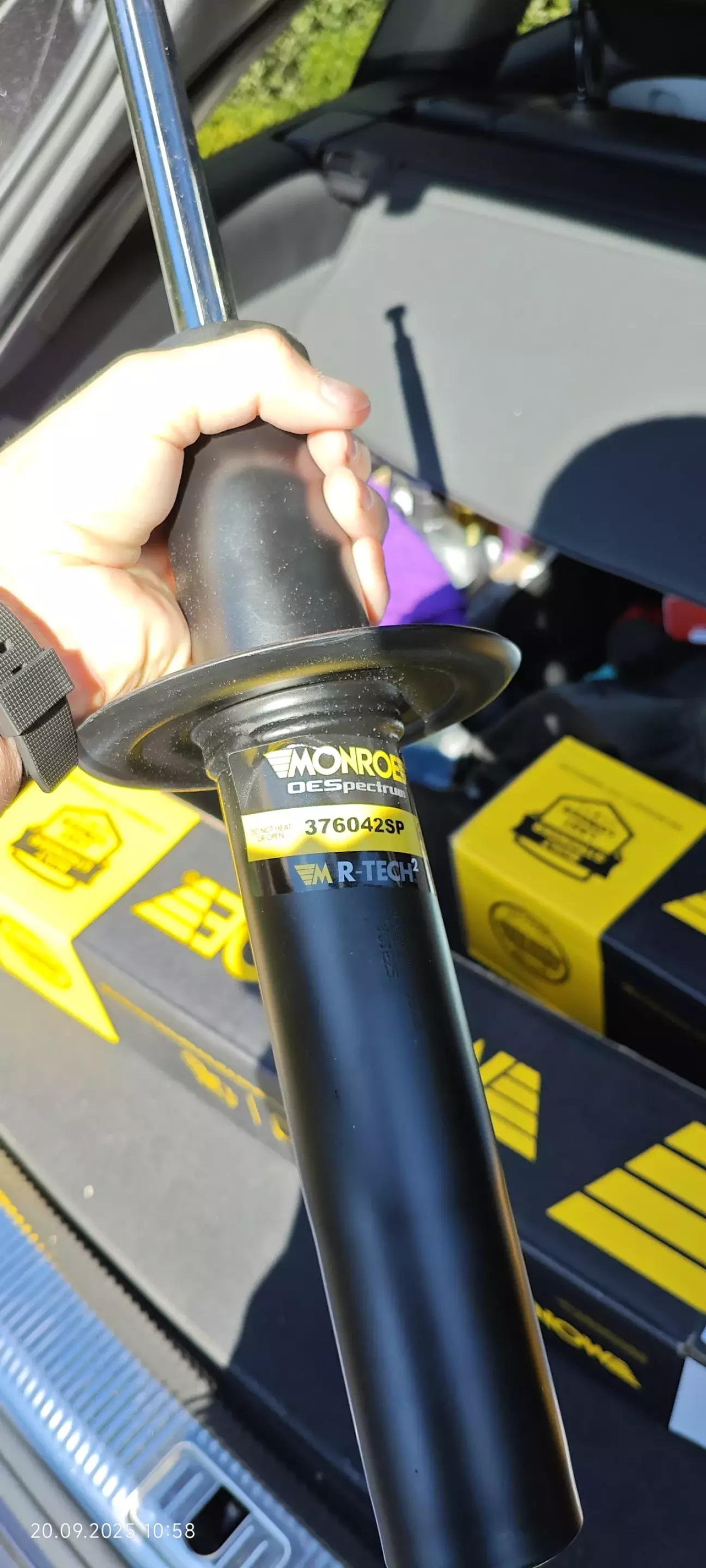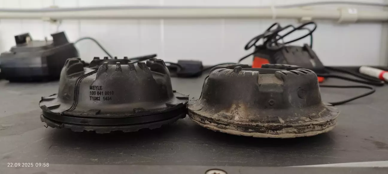Замена у человека заняла меньше трёх часов. Мо амортам, больше всего думал, подойдут или нет. Размеры, один в один со старыми, и тарелка расположена в том самом же месте что и на родных. Шток шатается на старых, вдавив его, он там и остался. Опоры тоже чуть тоньше новых, отбойники уже рассыпались от возраста.