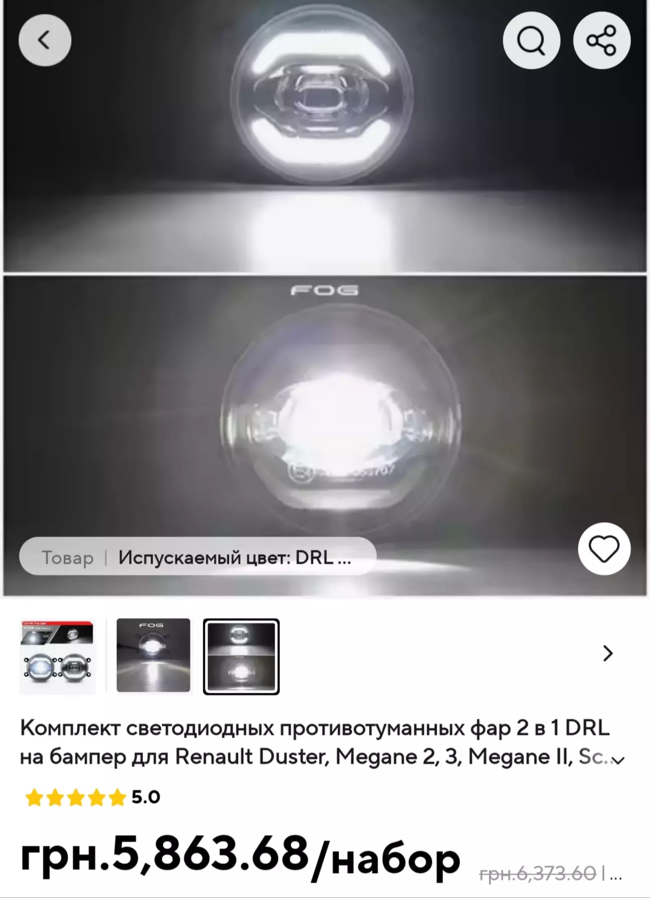 Від затії на час відмовився. Нещодавно на просторах інтернету натрапив на ДХВ, які вбудовані в протитуманні фари. На вищезгаданому Аліекспресі почав переглядати варіанти: