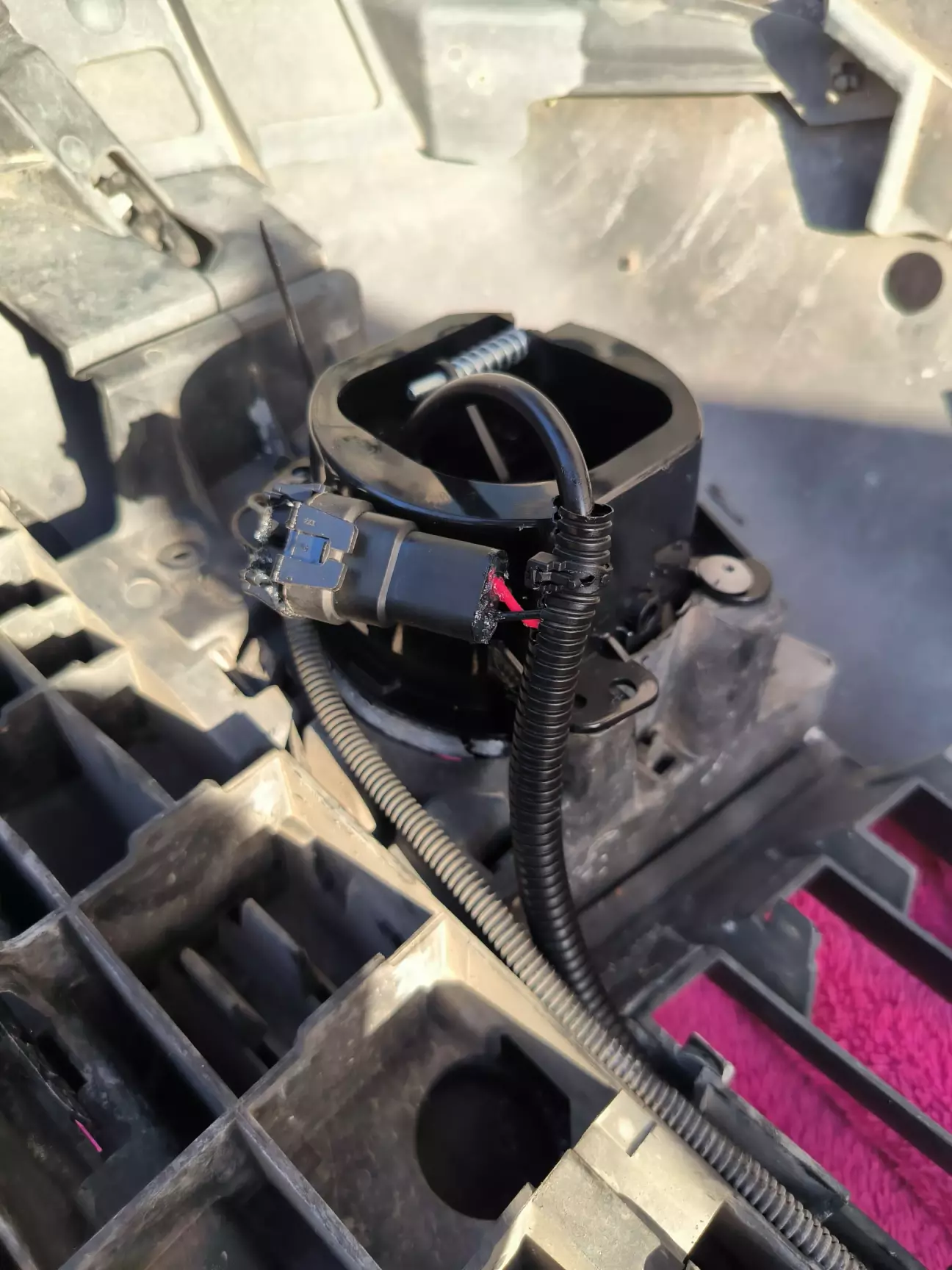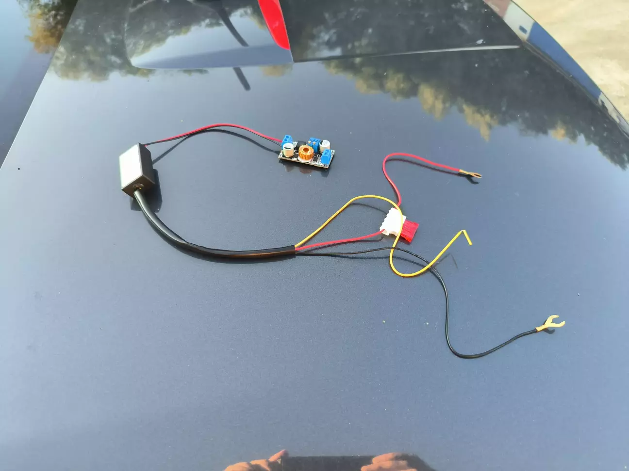 Хотів робити схему без керуючого модуля, тільки з понижувачем, але день добігав кінця, а дістатися до підкапотного блоку запобіжників не так вже й легко, в результаті було прийнято рішення підключити модуль управління ДХО до клем акумулятора, за модулем відразу йде понижуючий модуль з виставленою вихідною напругою 11.7В і 0.4А, а вже з нього фішка на підключення до фішки бампера. Поворотники під капотом підключати не став, відклав це на інший день.