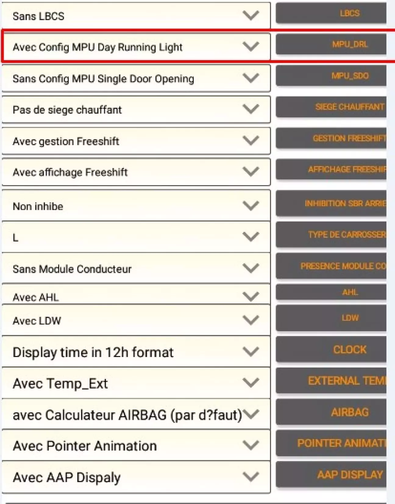 Нам потрібен 2 пункт Avec Config MPU Day Running Light