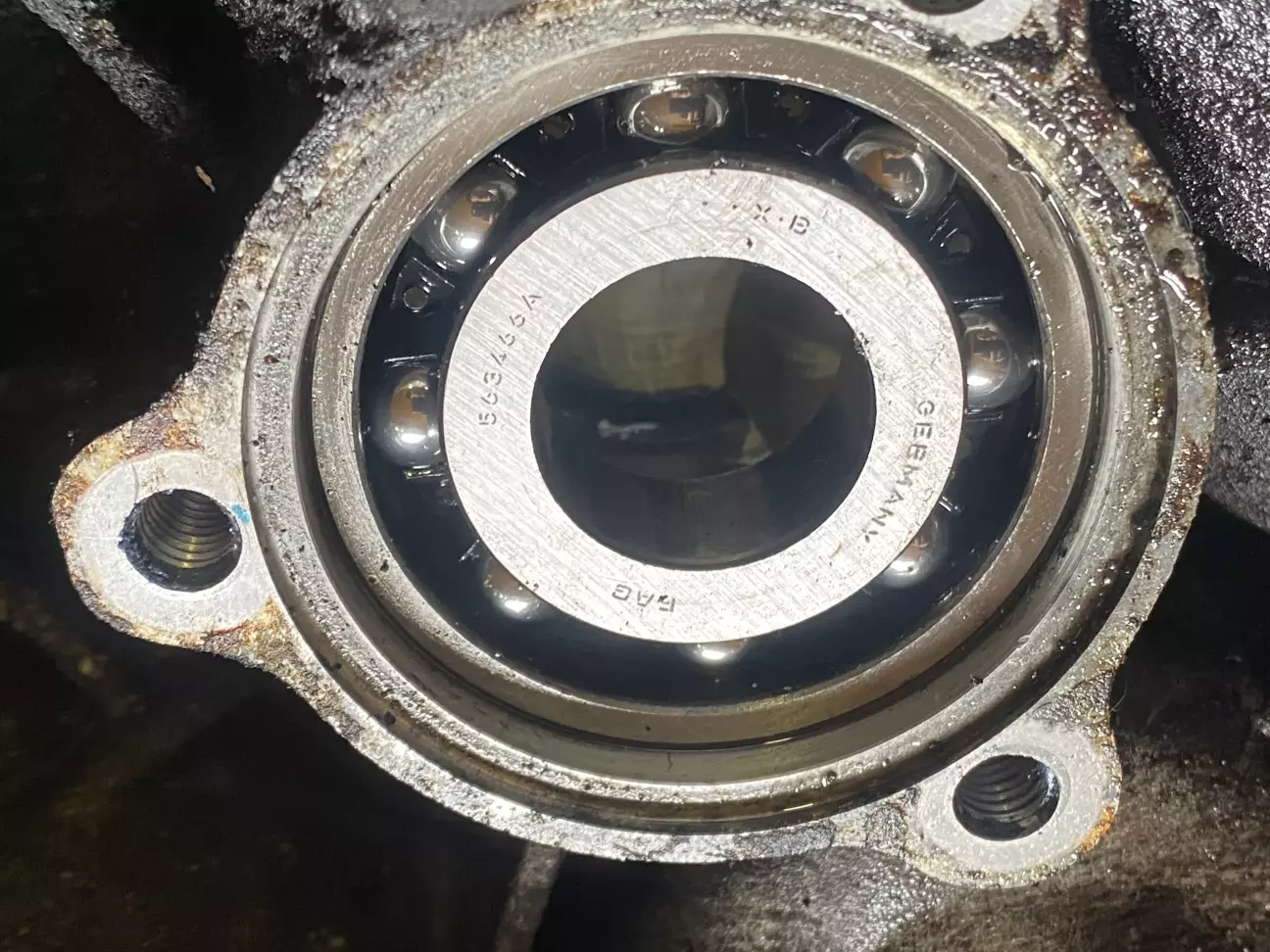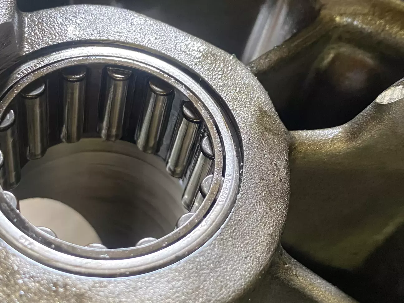 Первинний вал має три вальниці, звичайну радіальну кулькову, проміжну - роликову без внутрішньої обойми (310-6603 FAG якщо не помилився) і ззаду роликову конічну радіально-упорну. Сама дорога це середня, коштує знову як добра третина-половина коробки.