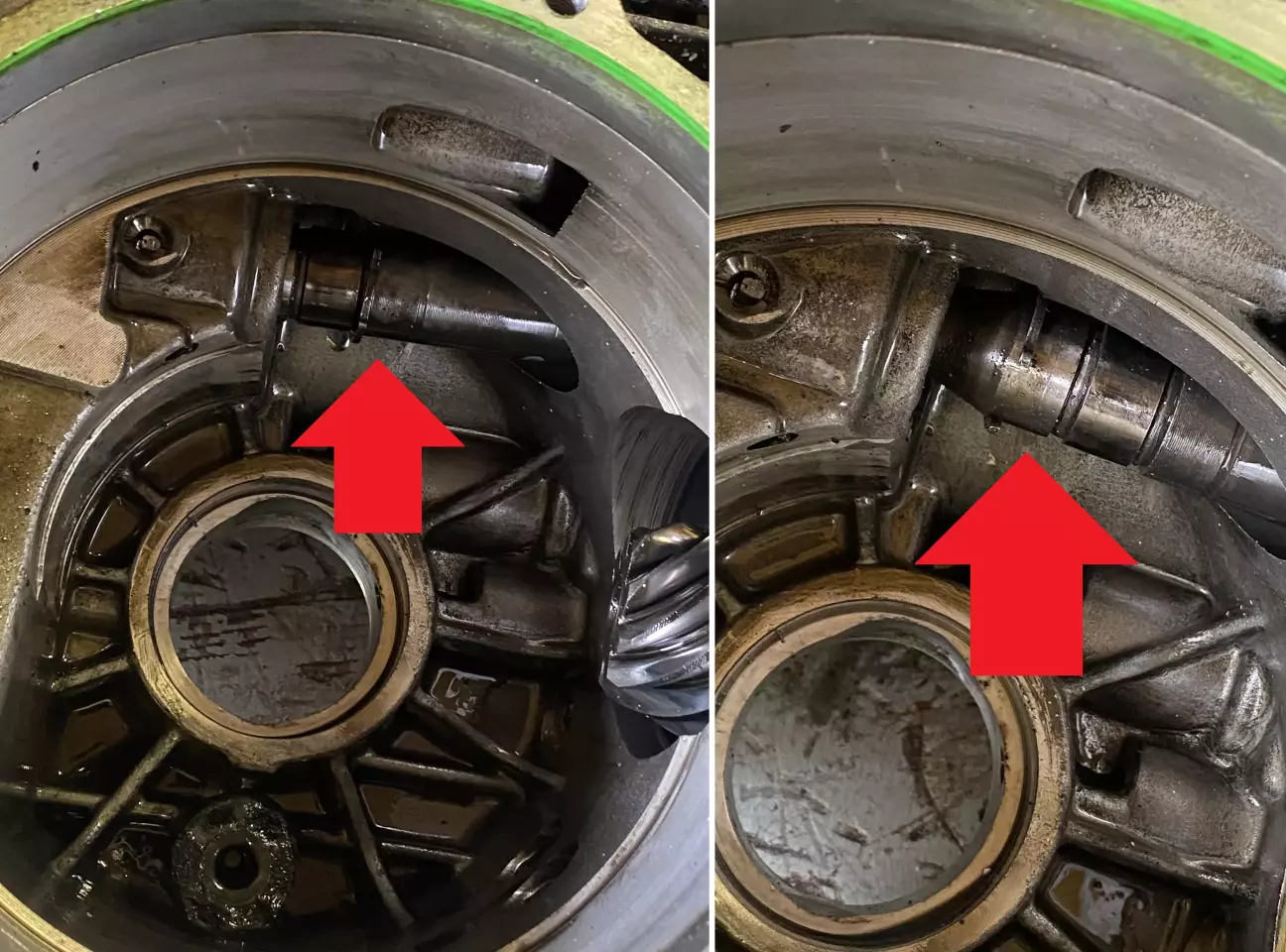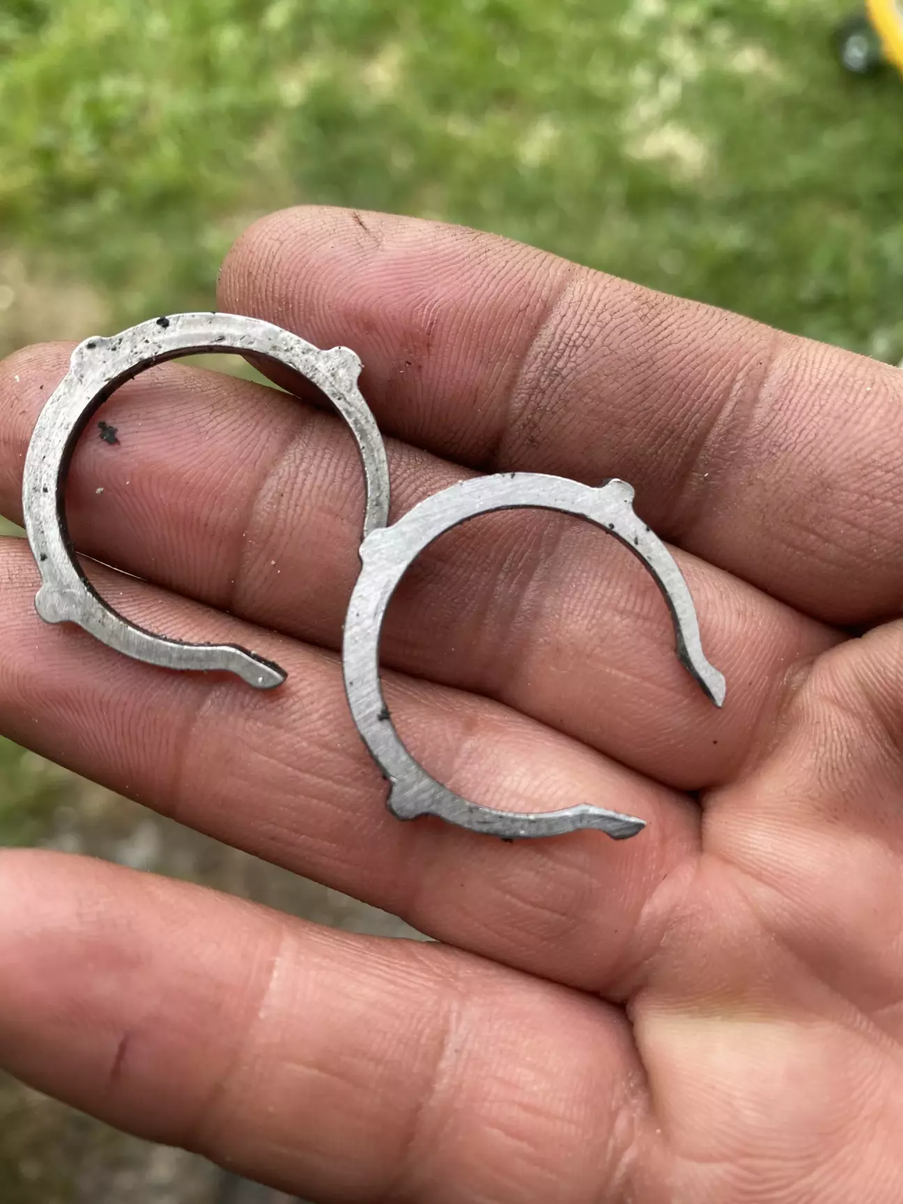 Наскільки я зумів і обдумав то напевне зробили так щоб легше збирати, підіпхав собі на валу і воно легше заскакує в канавку. Робив так: щипцями розтиснув і не намагався витягнути як звичайне бо злітає зразу а одну сторону закидав на вал, і вкруткою чи гачком підправляю по колу і воно вискакує, але треба пильнувати і перший край який ти закинув, ледь перекос клац і все знову в канавці. Десь хвилин 10 мучився, непроста річ. Робив сам, допомога в цьому питанні не факт що допоможе.