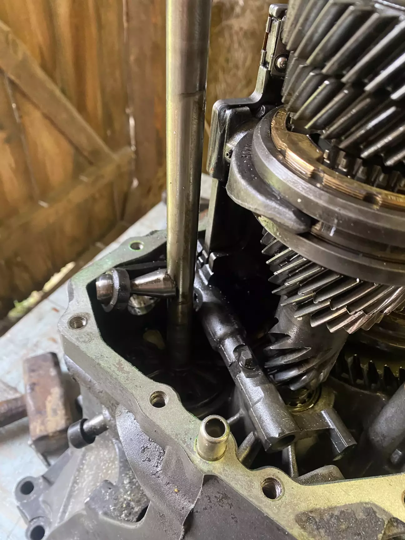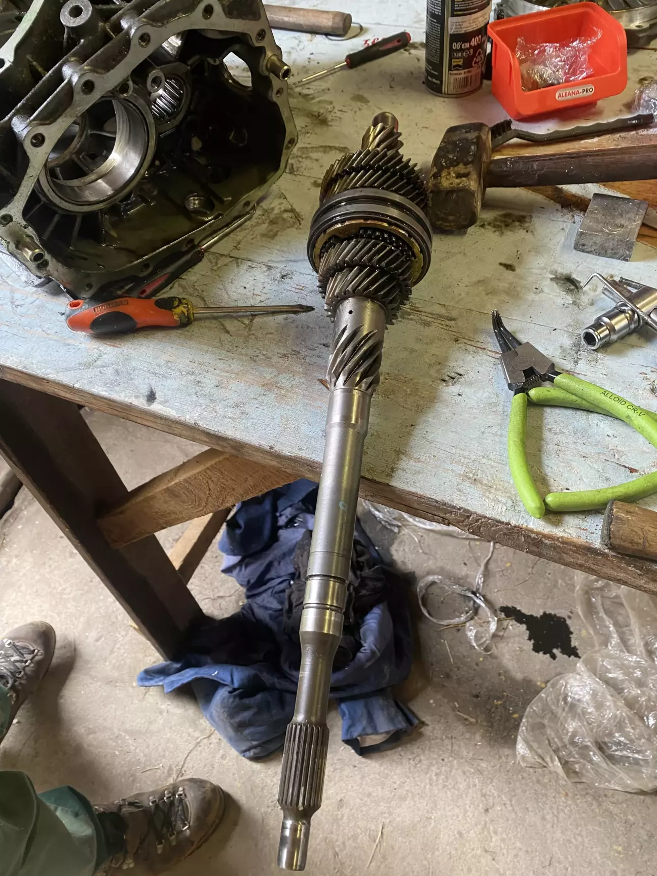 Такий момент настає що можна випхати повністю первинний вал, і зразу за ним і другий, і виходить що можливо штифт можна і не вибивати, але я вибив бо з тим заїздом в синхронізатор то трохи ризиковано.