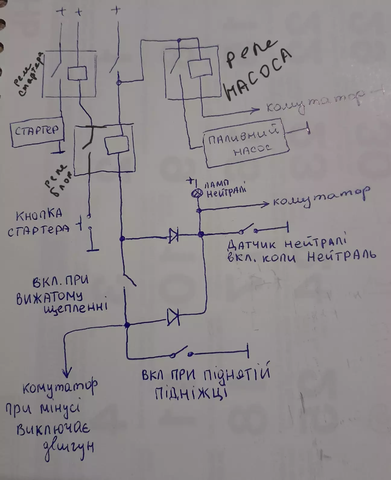 Розбирав вилку - чомусь мот став нижчим і мякшим, думав пружина лопнула - все ок. Склав, запустив, забув ножку підняти, ввімкнув швидкість, заглох, і все - мертві бджоли: нейтраль то горить, то жевріє, клацає реле стартера, потім реле розмикання стартера і все, тиша.