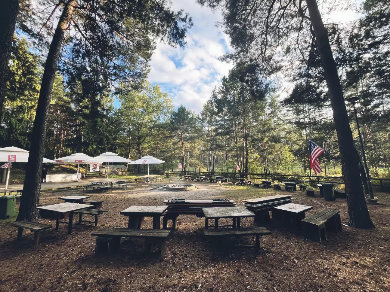 Двома годинами і 180 кілометрами потому ми приїхали до місця події, і настрій одразу покращився. Аеродром із стовпами пилу - це гарно для фанатів моторизації, але ліс та озера - це зовсім інший рівень комфорту!