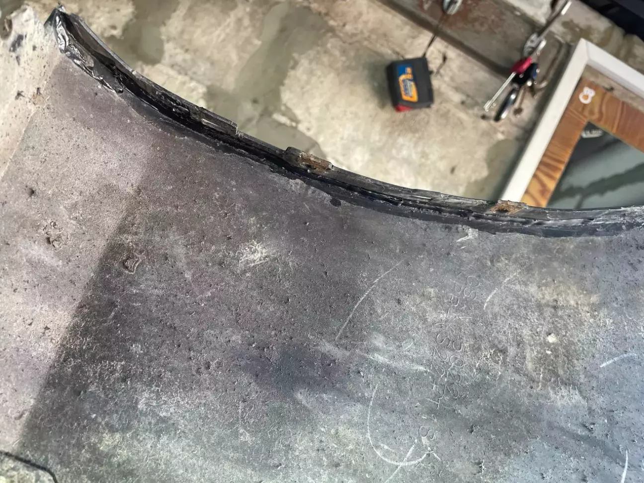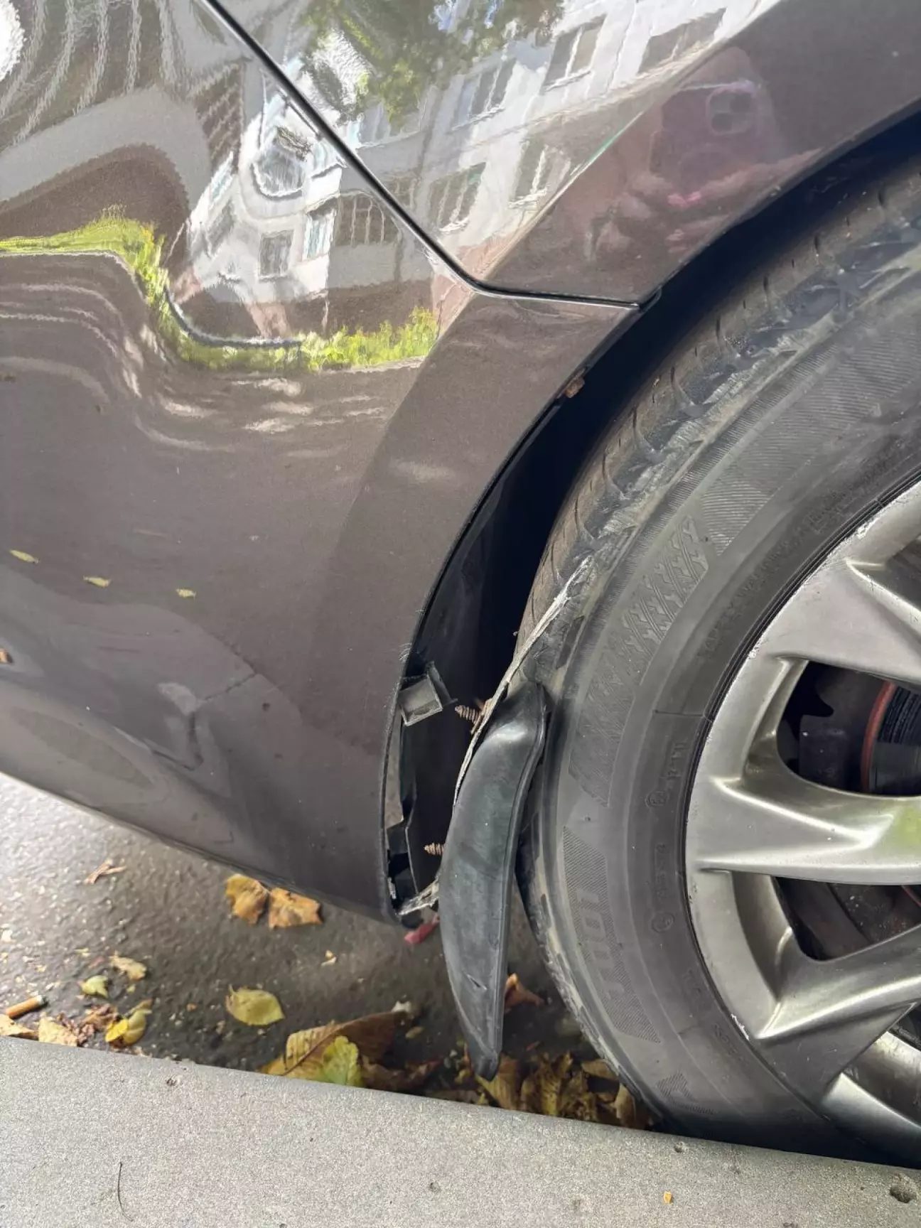 Звісно засмутився, але після того як все роздивився - трохи попустило. Все діло в тому, що бризковик стояв задовгий, і якщо прижатися до бордюра - його вириває з кромкою бампера, до якої він кріпиться. В цьому місці бампер вже мав пошкодження, і вже трохи ремонтувався мною за допомогою двокомпонентного суперклею.
