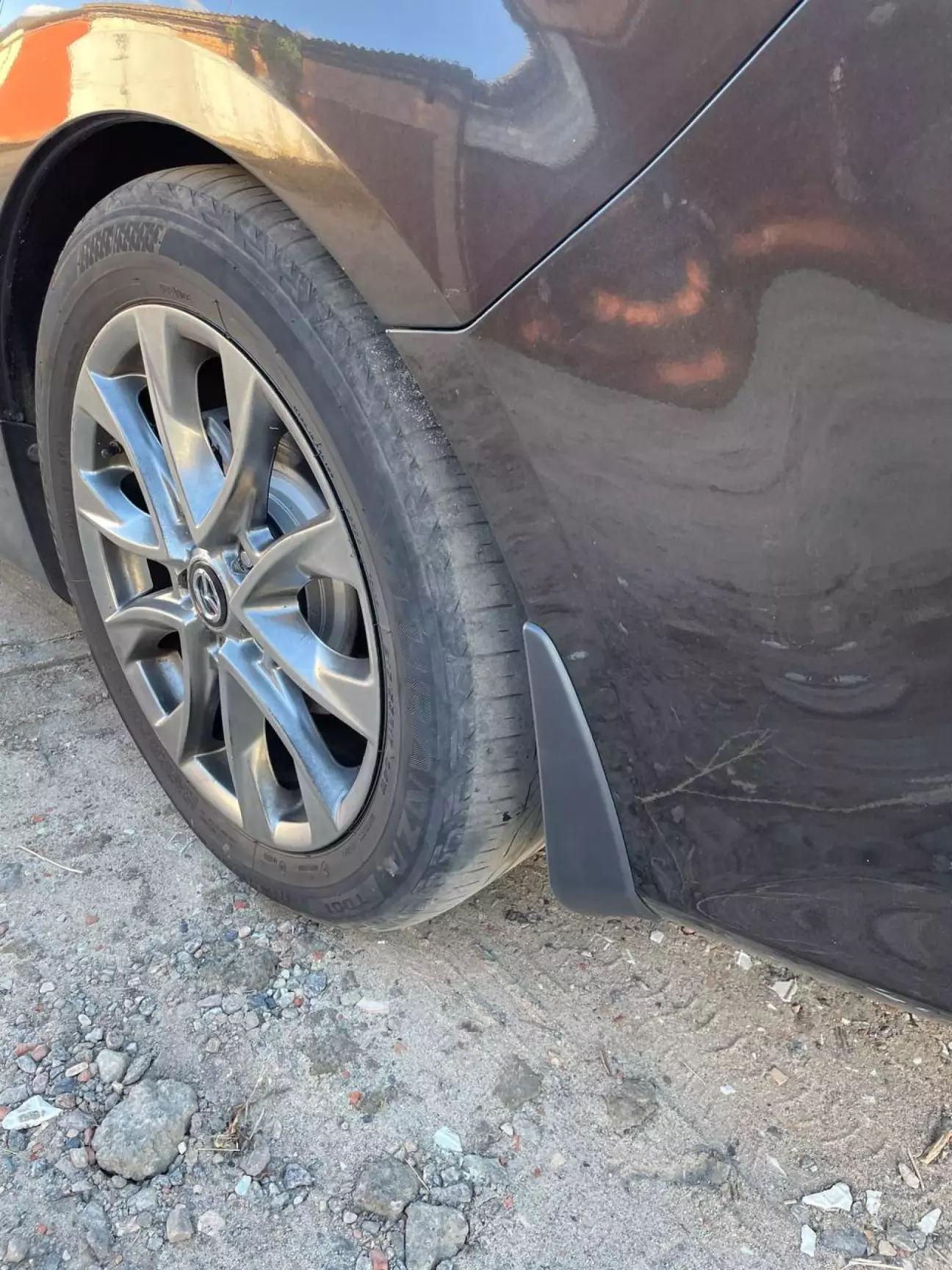 Бризковики віришив замінити на оригінал GDK4V3460, вони набагато менше виступають до низу, і їх вже не зажме між колесом та бордюром. Ось такий комплект
