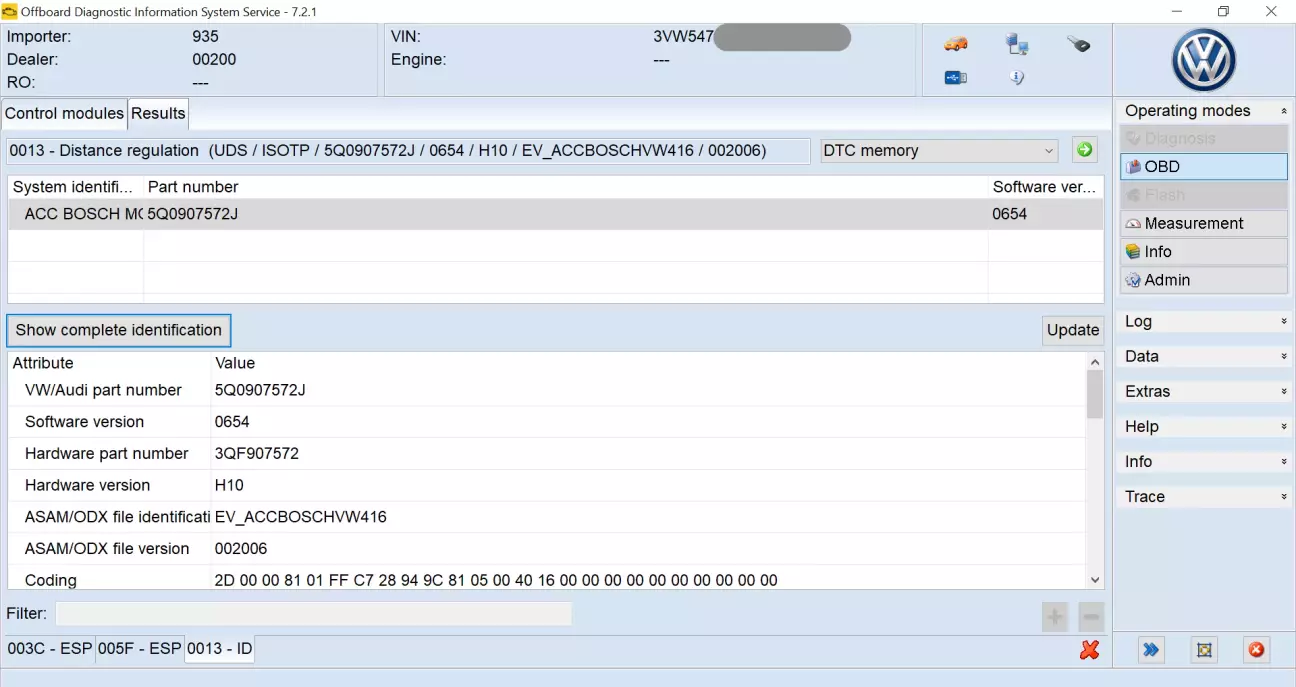 Дано: автомобіль з США, з базовим круїзом, МКПП (це і стало основною причиною всіх моїх проблем), в моїй комплектації мав на борту радар в значку з функцією "Система підтримки в разі загрози фронтального зіткнення" (Front Assist), але без ACC. VAS5054A, ноутбук на Windows 10 і доступ до інтернету.