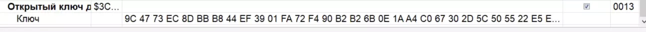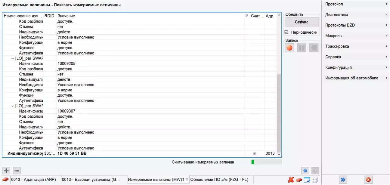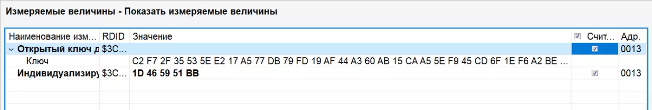 Повернувся в ODIS E -> Блок 13 -> Вимірювані величини -> Відкритий ключ SWAP та індивідуалізуюча ознака VCRN (вона нам нижче знадобиться). Для мого радару 5Q0/3QF потрібно було значення ключа — 9C 47 73... щоб він прийняв новий SWAP (для інших радарів буде відрізнятися: для 2Q0* — A6 2C 69...; 3Q0* — D2 C3 3E...; 5Q0* — 8F 51 4A...).