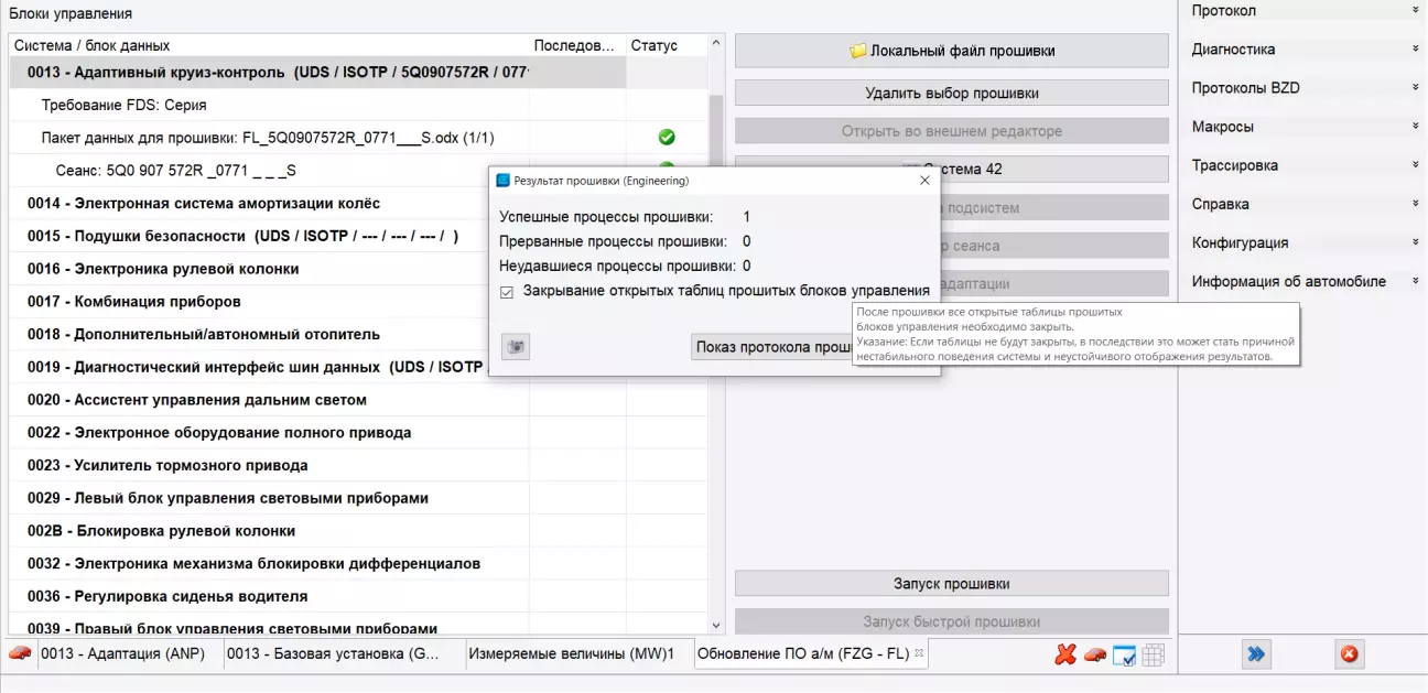 Якщо все вийшло, то йдемо прошивати звичайну (не інженерну) прошивку. Процедура ідентична прошивці інженерної. В моєму випадку це була версія FL_5Q0907572R_0771___S.odx.