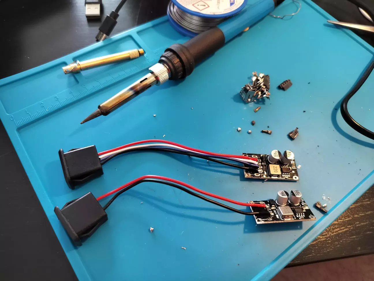 Один під підлокітником, інша під заднім прикурювачем - для маленької задньою пасажирки, в неї з собою телефон та бездротові навушники. Підключив до гнізда прикурювача.
