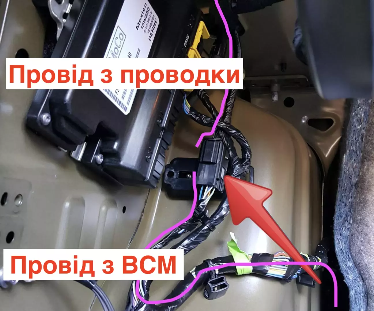 12. З bcm готово! Далі тяггнемо наш провід від bcm в багажник. Це не складно, достатньо трохи зняти пластик.