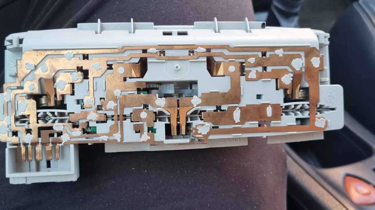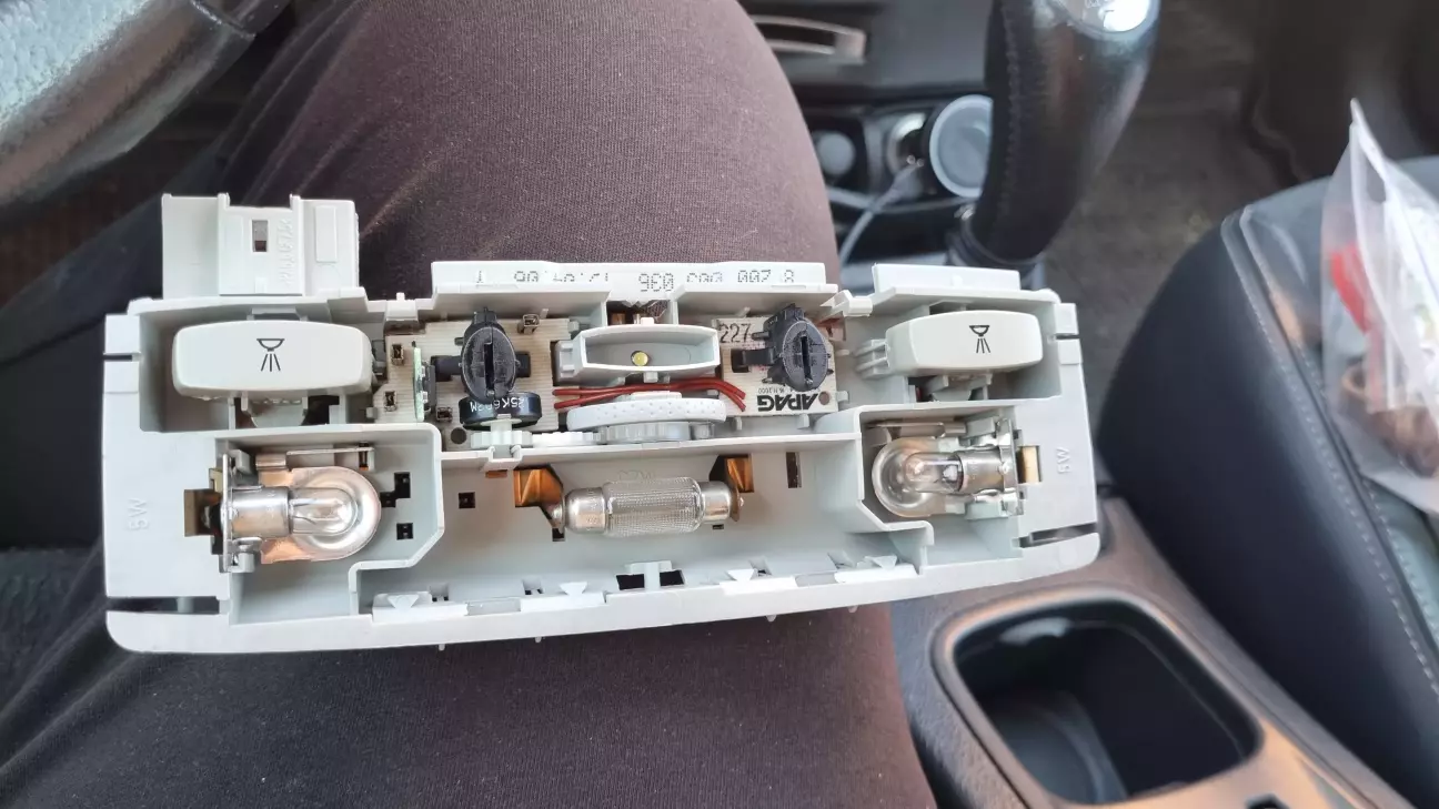 Так от, за ці плюшки відповідає центральний тумблер, який має три положення. І з плином часу контакти позношувались, воно барахлило, світло блимало. Весь час як на передньому, так і на задньому плафоні доводилось вошкати пальцем той тумблер, щоб піймати контакт. Тож вирішив я виправити цей недолік.