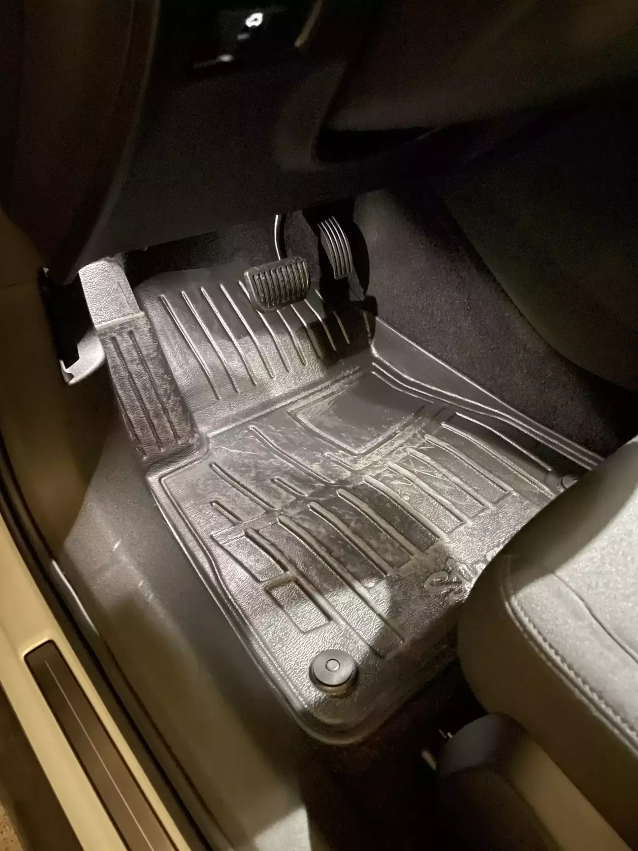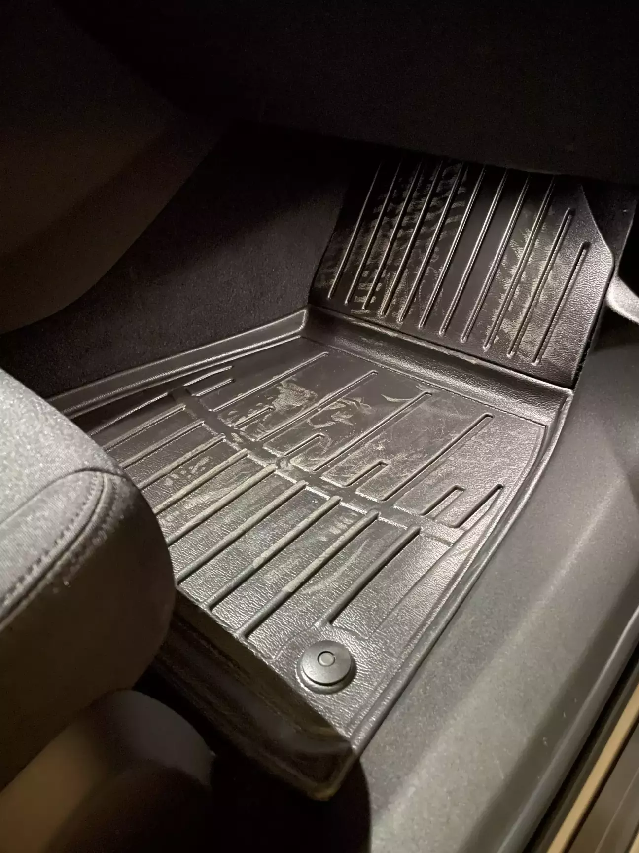 Розпочав з простого - замовив нові килимки в салон. Минулий власник з авто віддав ворсові оригінальні, але з моїми умовами експлуатації вони погано стикуються. Єва-килимки мені не сильно подобаються, а в Поліку вони взагалі виглядають максимально дивно… Тож обрав резинові виробника Stingray. Приїхали швидко, якість для їх ціни непогана, специфічного запаху резини не мали. Лягли дуже добре по формі підлоги, є бортики та, що мені було важливо, водійський має випуск під ліву ногу. На мій погляд, краще були б тільки weathertech, але там ціна космос і, нажаль, нема випуску на водійському.
