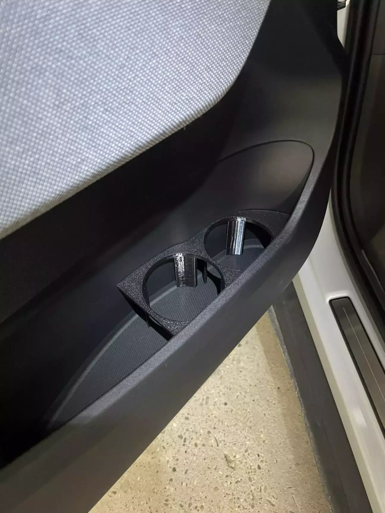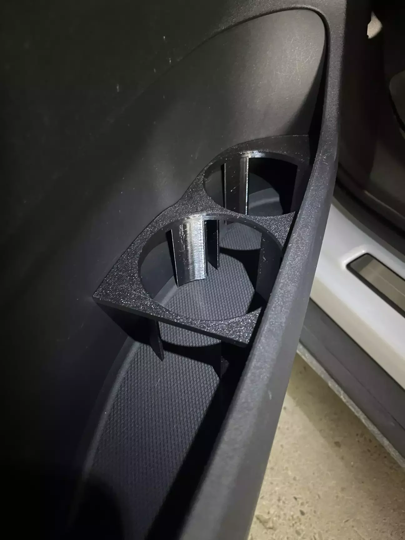 Мабуть в усіх оглядах Polestar згадується про досить специфічне рішення з підстаканниками. Трохи погуглив, як народ то вирішує - від закріплення тримачів стаканів для дитячих візочків і до 3D друку різного роду. Вішати щось інородне в салоні на самому видному місці я не хотів, тож обрав варіант зі вставками в карти дверей. Швидко знайшов хто то надрукує і за 600грн отримав додаткові чотири підстаканники (по два в водійську і дверку переднього пасажира). Звісно, було б супер якби це була лита заводська деталь, але і так вийшло досить непогано і головне - функціонально та непомітно.