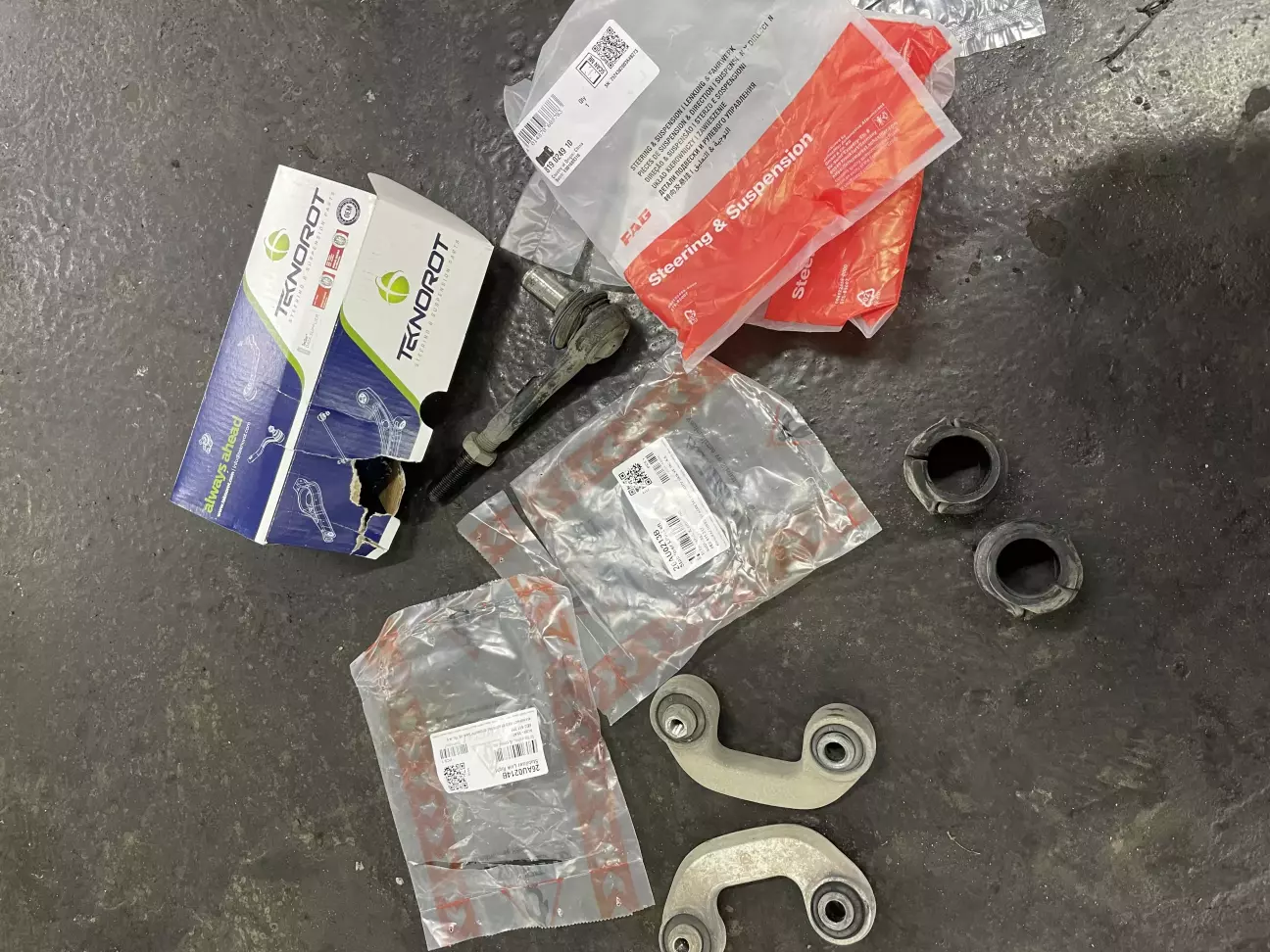 Давно дивився на стійки стаба і ніякої довіри до них не було, та й почав легко постукувати лівий наконечник. Стійки стаба asmetal, втулки по FAG, рульовий наконечник взяв TEKNOROT(і само собою додав змазки знявши пильник). Робота 1год. Після заміни зробив геометрію коліс.