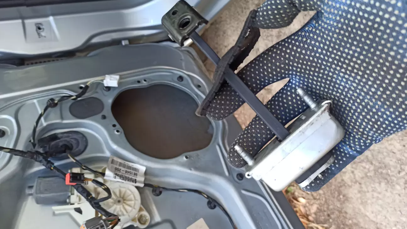 Заміна легка , знімаємо дверну карту,потрібно висверлити закльопки з динаміка,і через отвір динаміка дістаємо обмежувач.