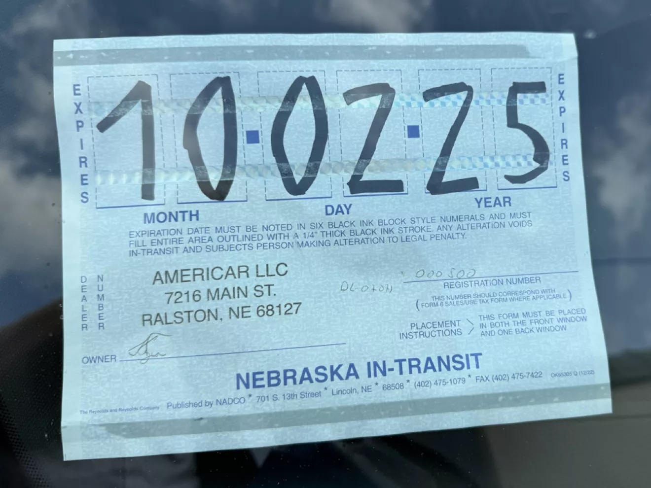 В Небраске при покупки машины в диллершипе тебе дают бумажные номера на один месяц. Выглядят они так