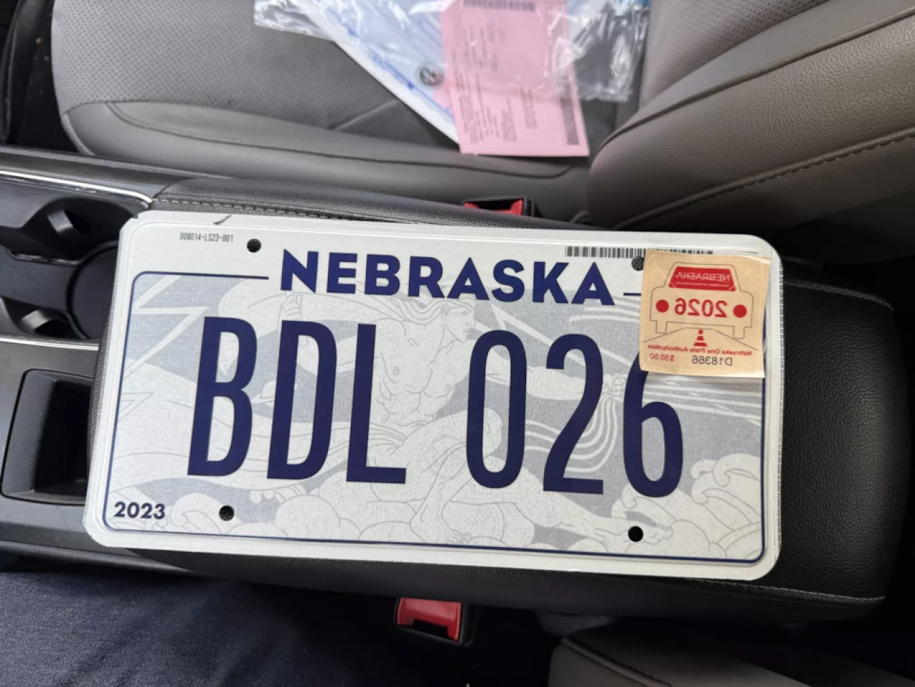 В Небраске выдают два номера и ездить нужно с обоими. Но при отсутствии крепления спереди и за небольшую ($50 в год) плату можно ездить с одним.