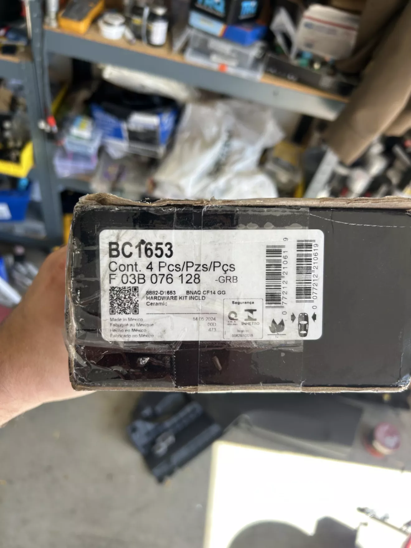 Колодки поставил Bosch, гайки заказал на Амазоне цельные под 19тую головку.