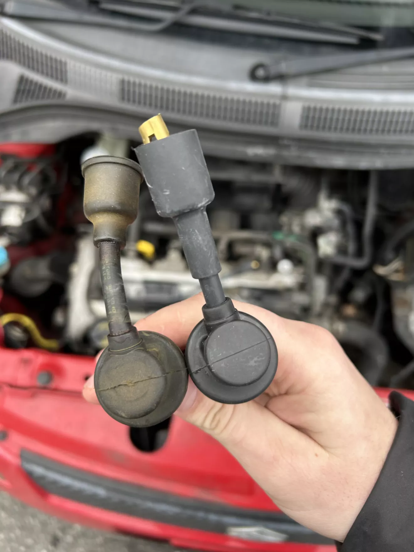 При выкручивании вылезла проблема — наконечник провода остался на свече(