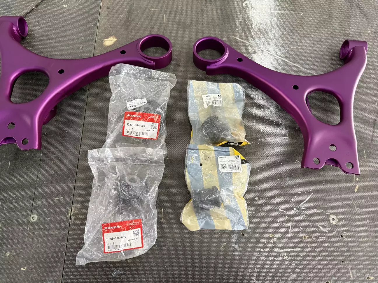 І так, після розбору підвіски ричаги потребували нових сайлентів і також вирішив перефарбувати їх хоч і були пофарбовані в чорний порошок.