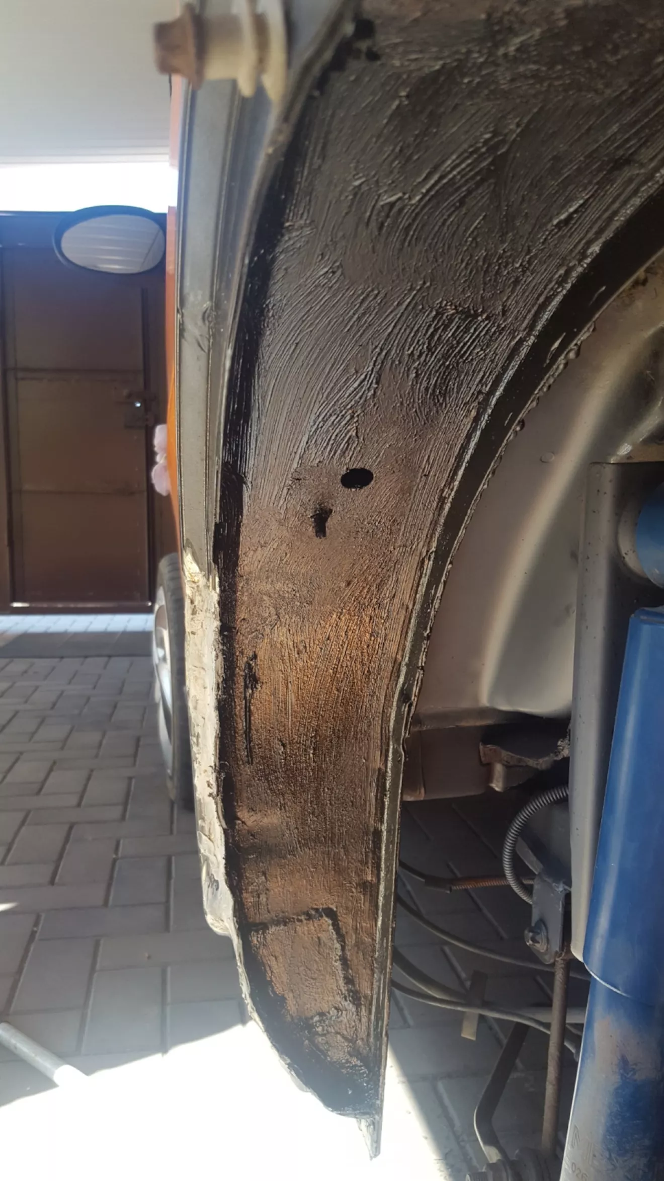 Перед покраской подкрылки были зачищены, обработаны преобразователем ржавчины, окрашено кислотным грунтом, потом серым и черным и все промазано мастикой!машина уже у маляра, ждем завершения покраски)после пройду по всем тех отверстиям мовилью)